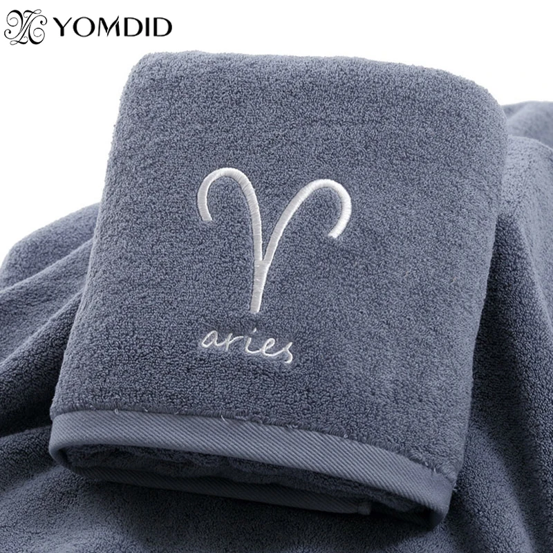 100% Cotton Bath Towel Constellation Pattern White Grey Embroidered Bath Towel Girl/Men Bathroom Rec...