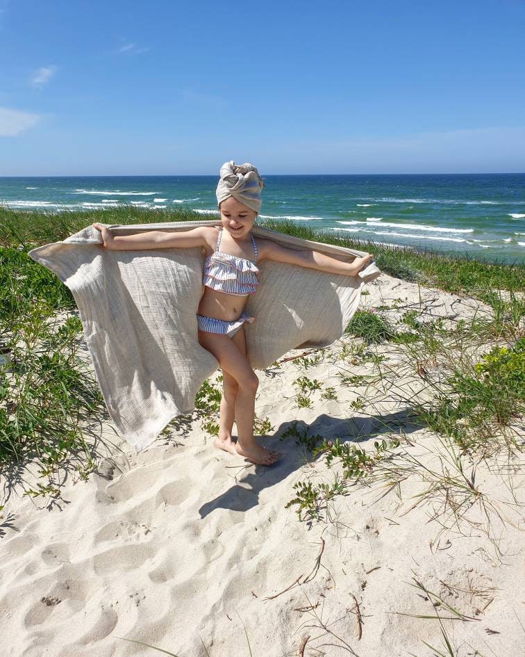 Linen hair turban towel, striped softened linen hair towel, natural...