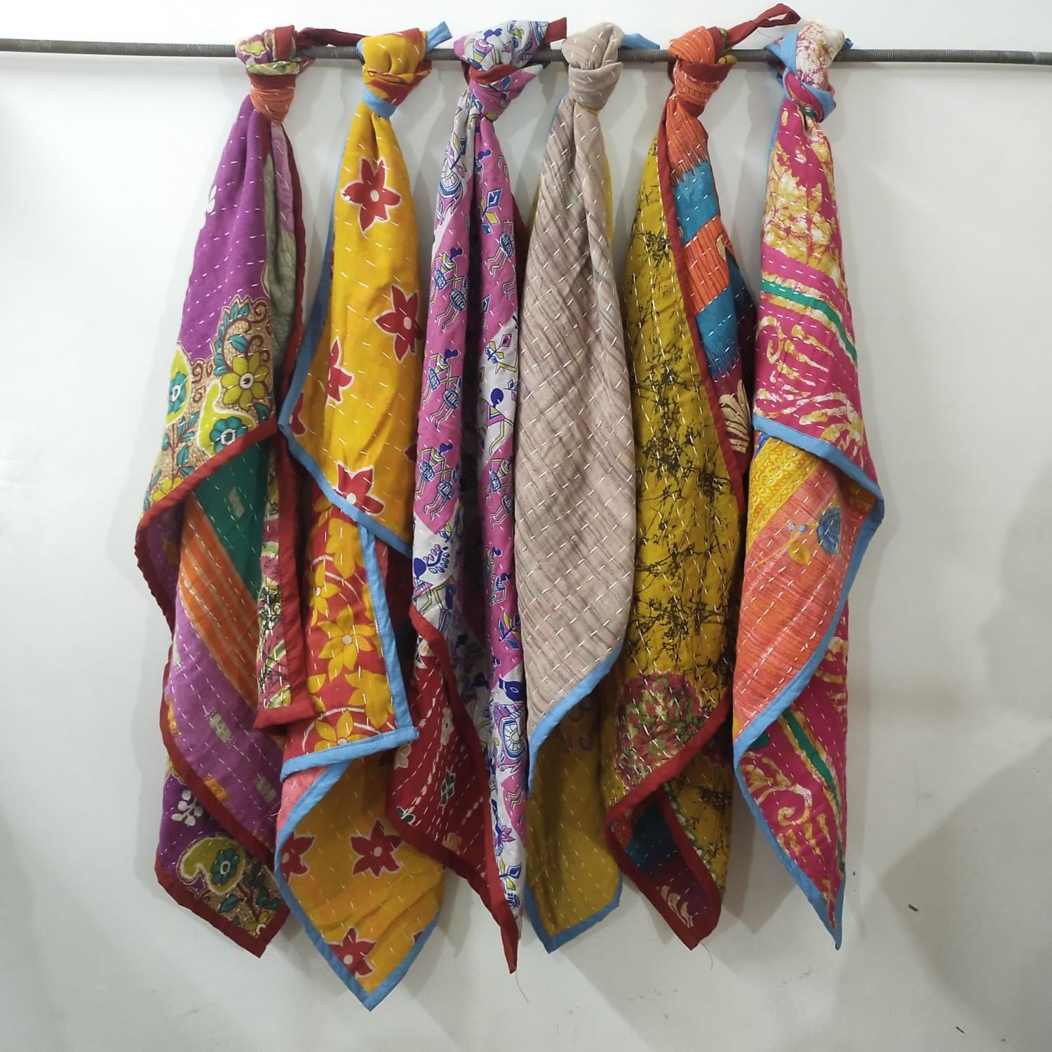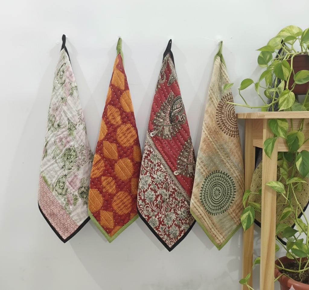 Kantha Kitchen Towel Set of 5 - Handmade Colorful Vintage Cotton Te...
