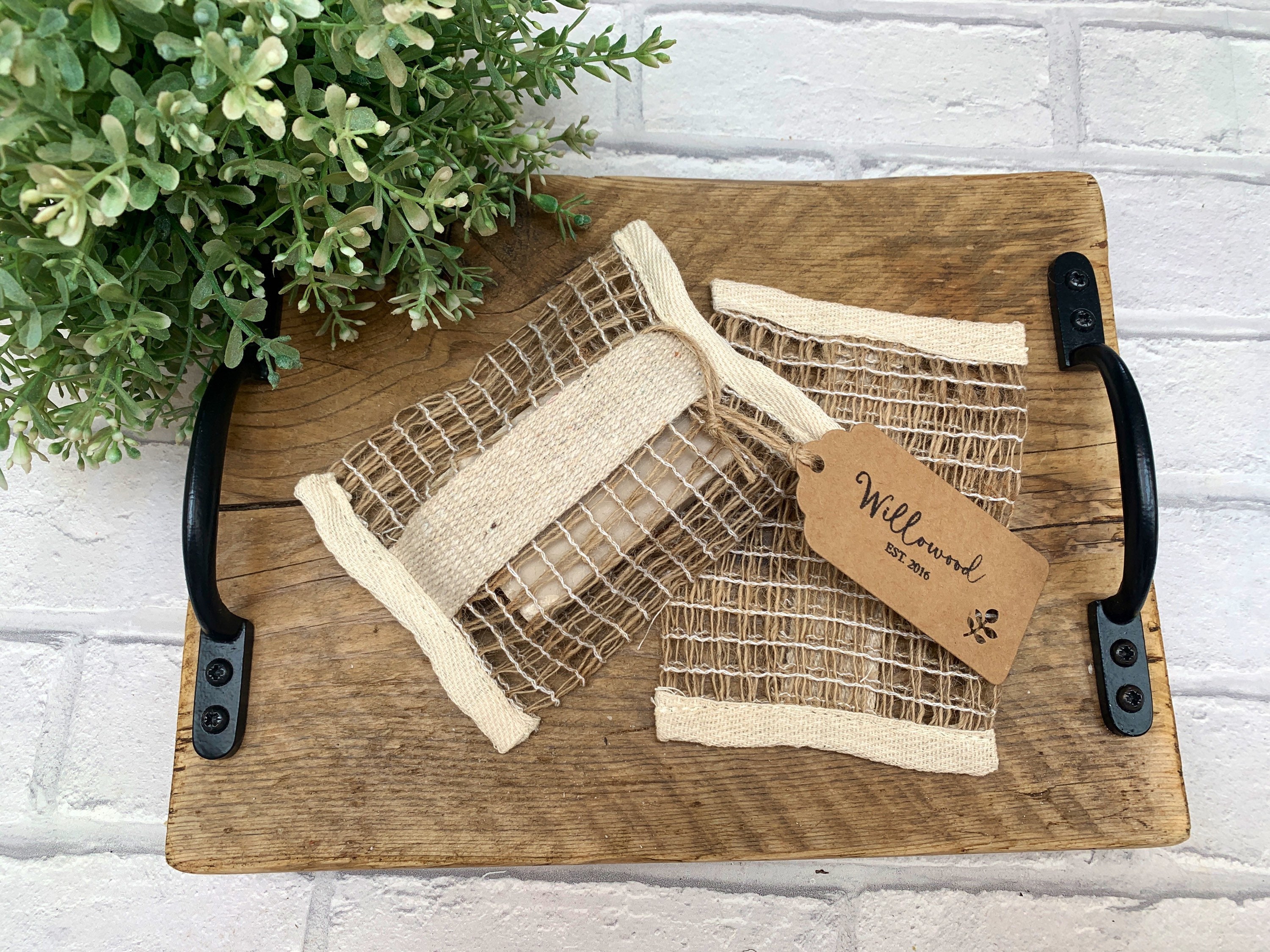 Jute and Cotton soap saver wash bag organic exfoliating shower mitt...