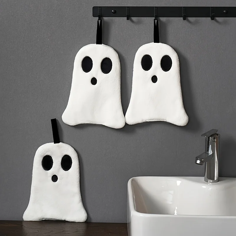 Halloween Bathroom Hand Towel - Soft, Absorbent Coral Fleece, Black & White Spooky Design, Perfe...