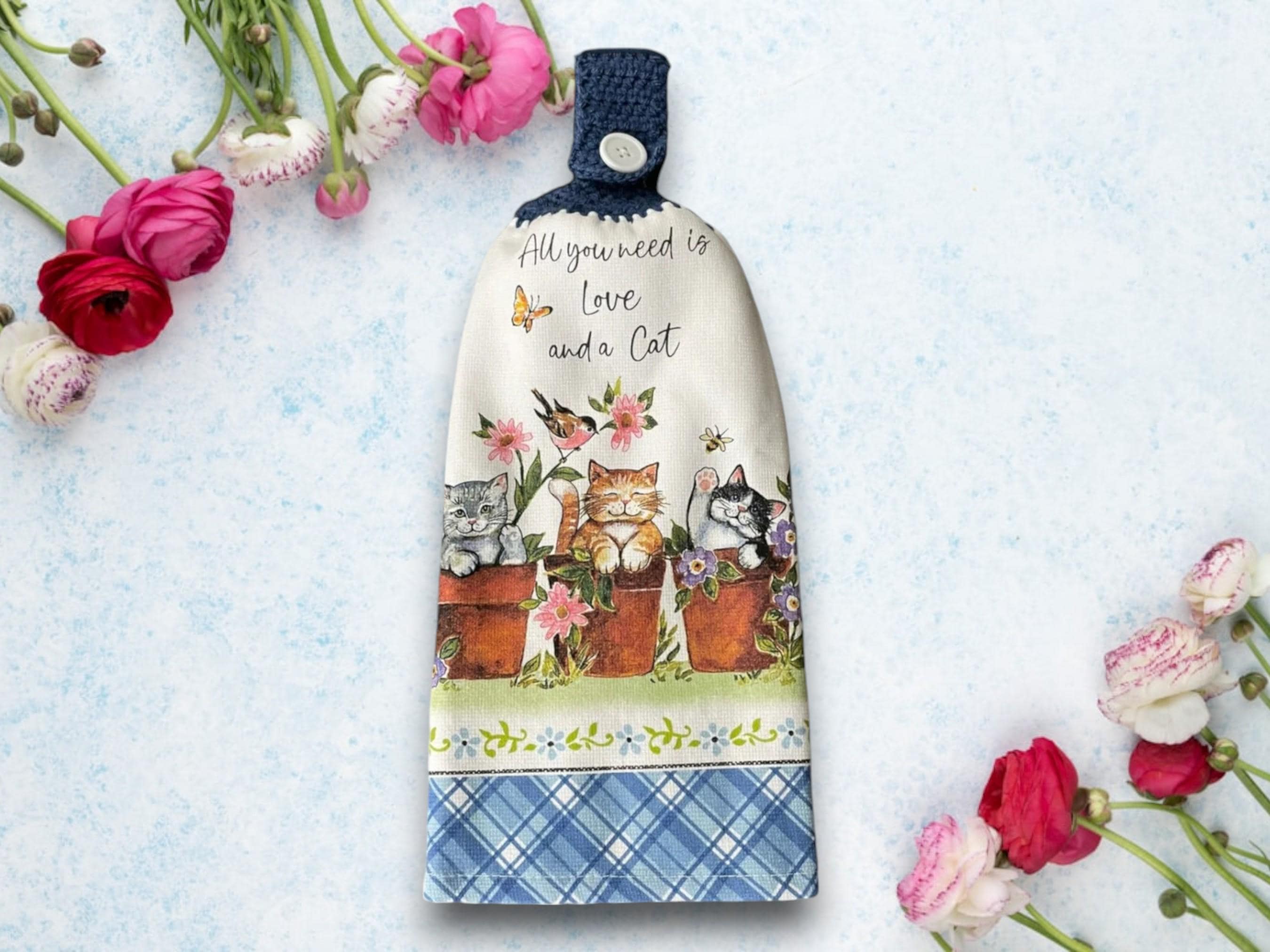 Cat Kitchen Towel, Cat Dish Towel, Cat Hanging Kitchen Towel, Croch...