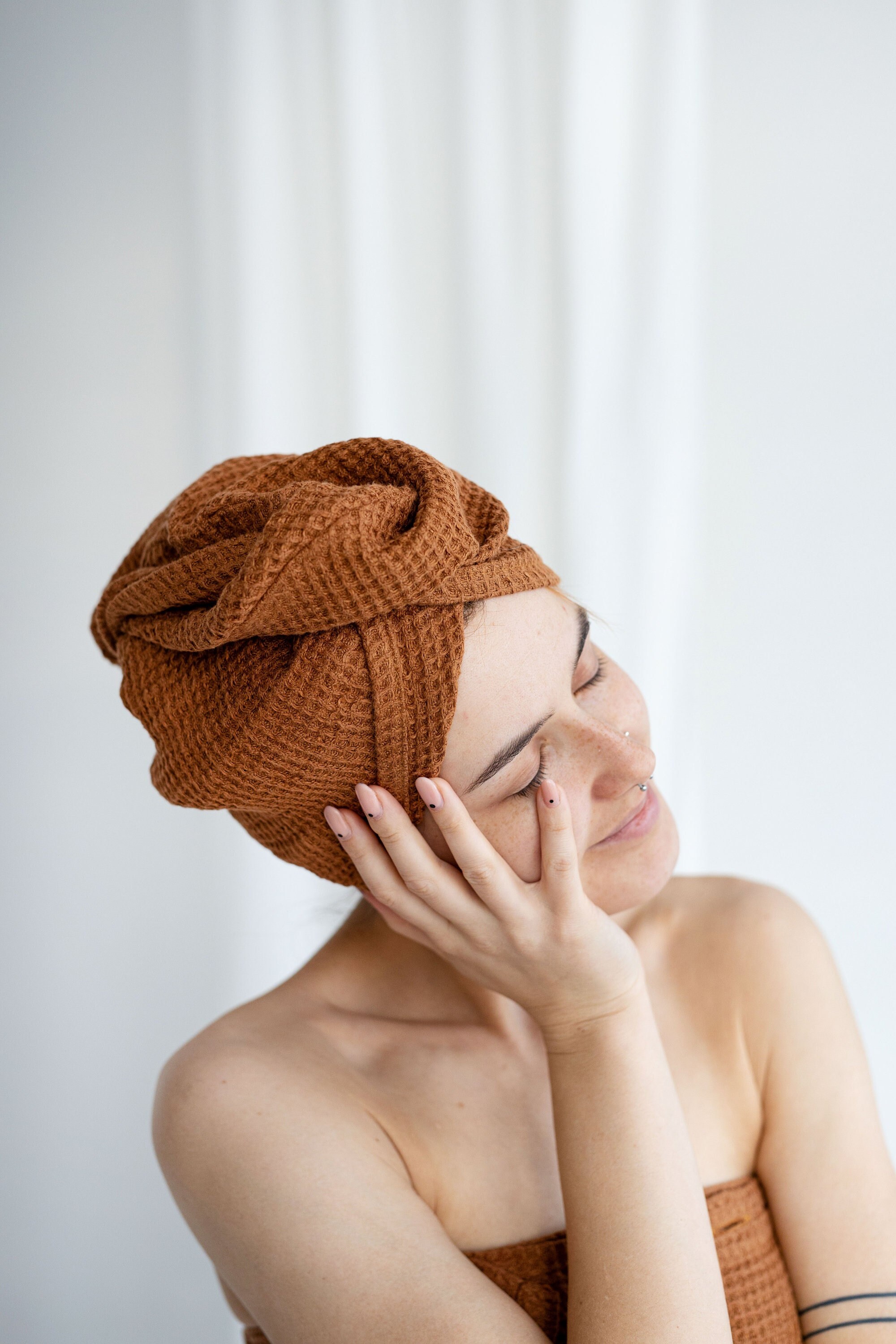 Waffle Linen Hair Towel, Natural Linen Waffle Hair Wrap, Linen Saun...