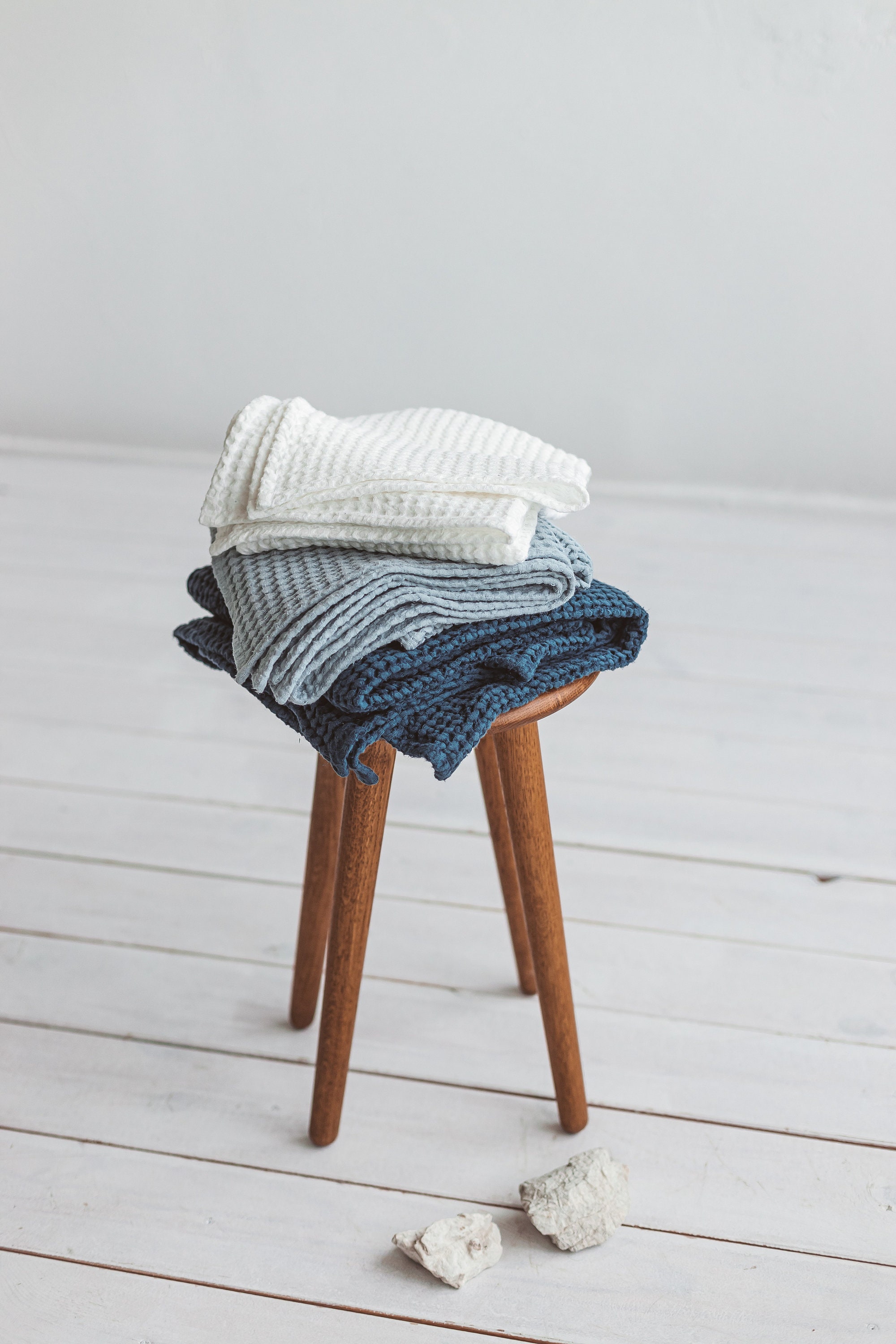 Linen Waffle Towel,Linen Hands Towel,Linen Bath Towel,Blue Linen To...