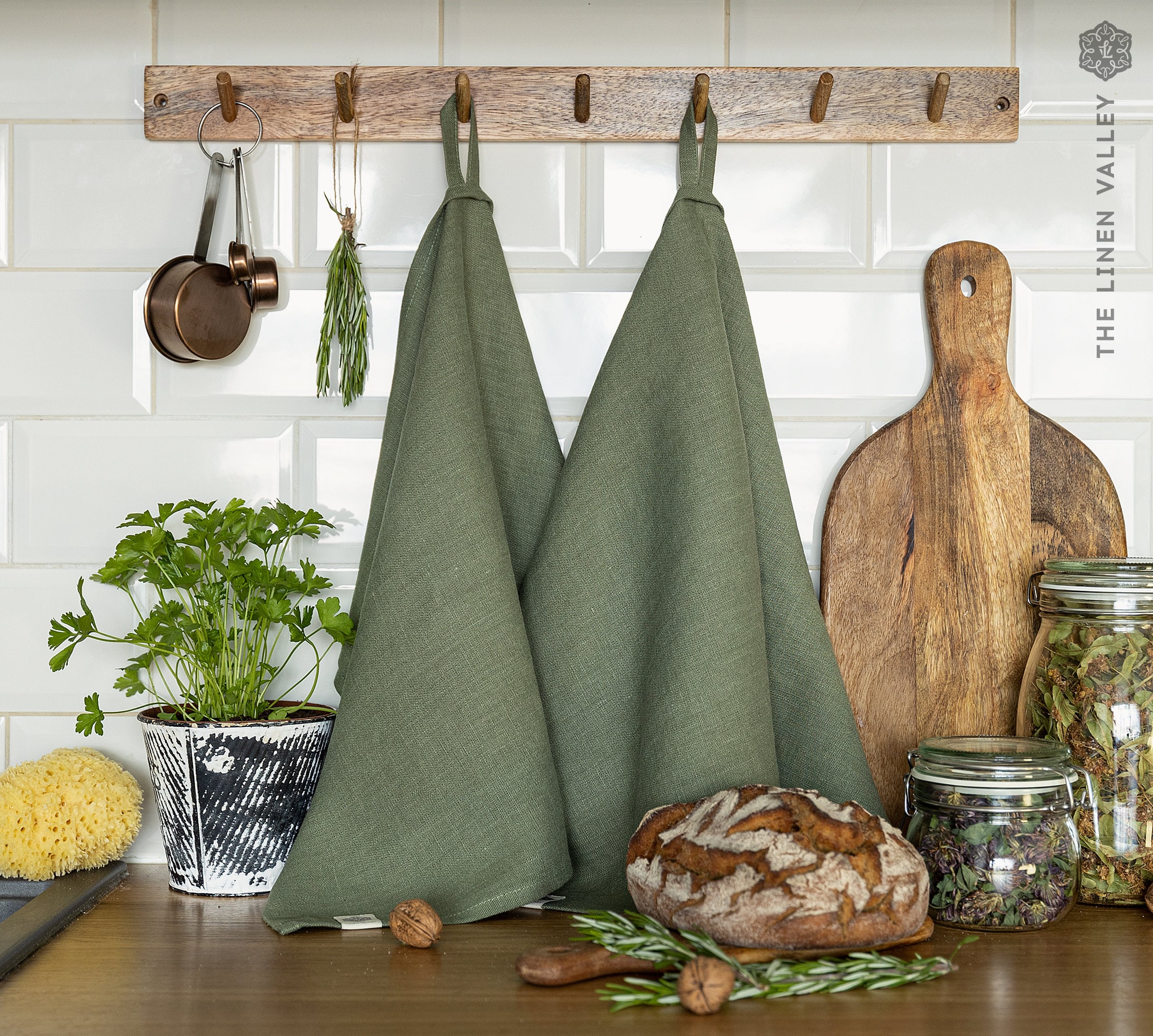 Linen tea towels ( 2 pcs). Moss green linen towels. Hand towel. Hea...