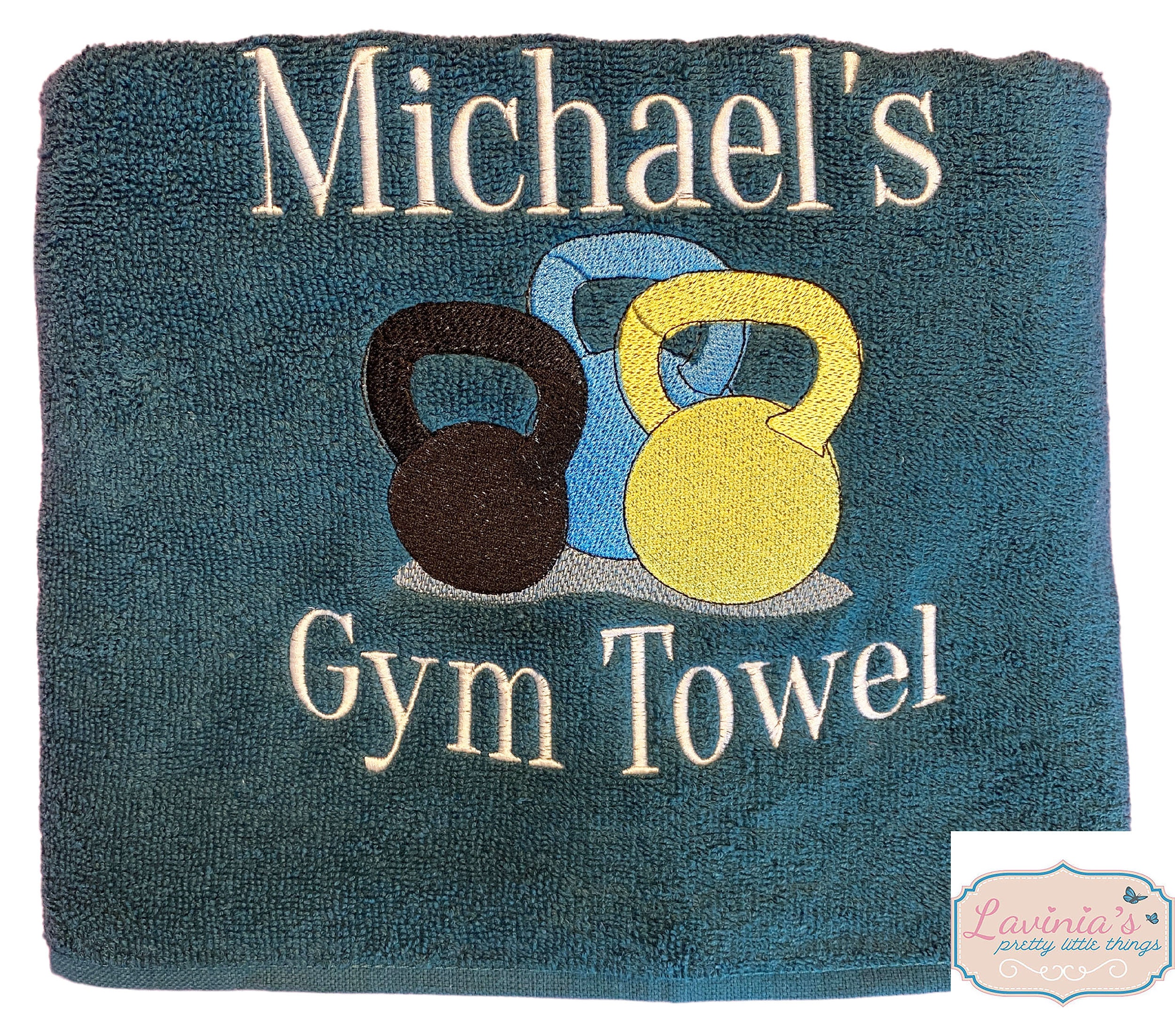 This Listing is for a Personalised kettlebell Gym Towel with Embroidered kettlebells and Personalise...