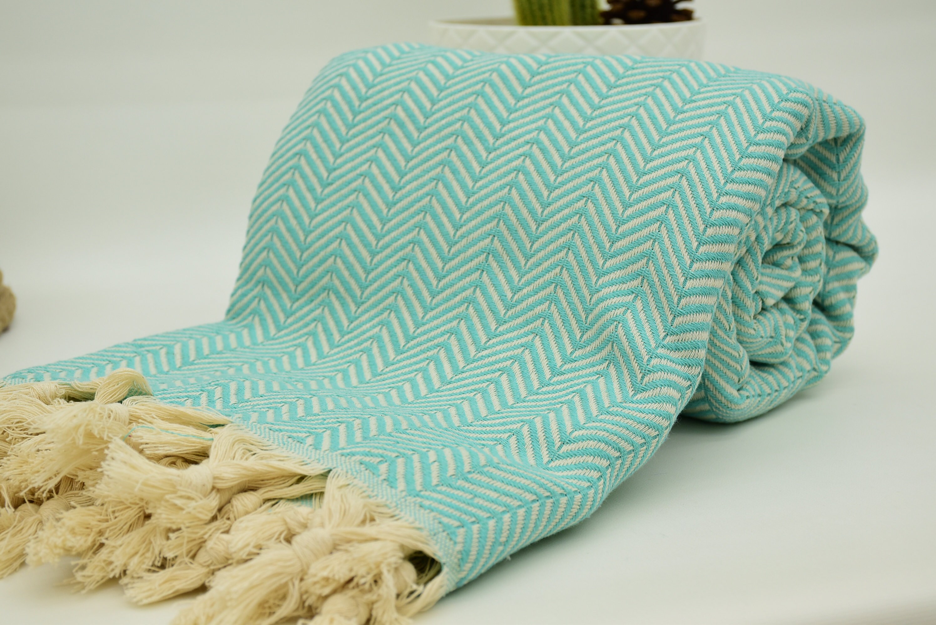 Turkish Blanket Herringbone Throw Bed Cover Table Cover Beach Throw...