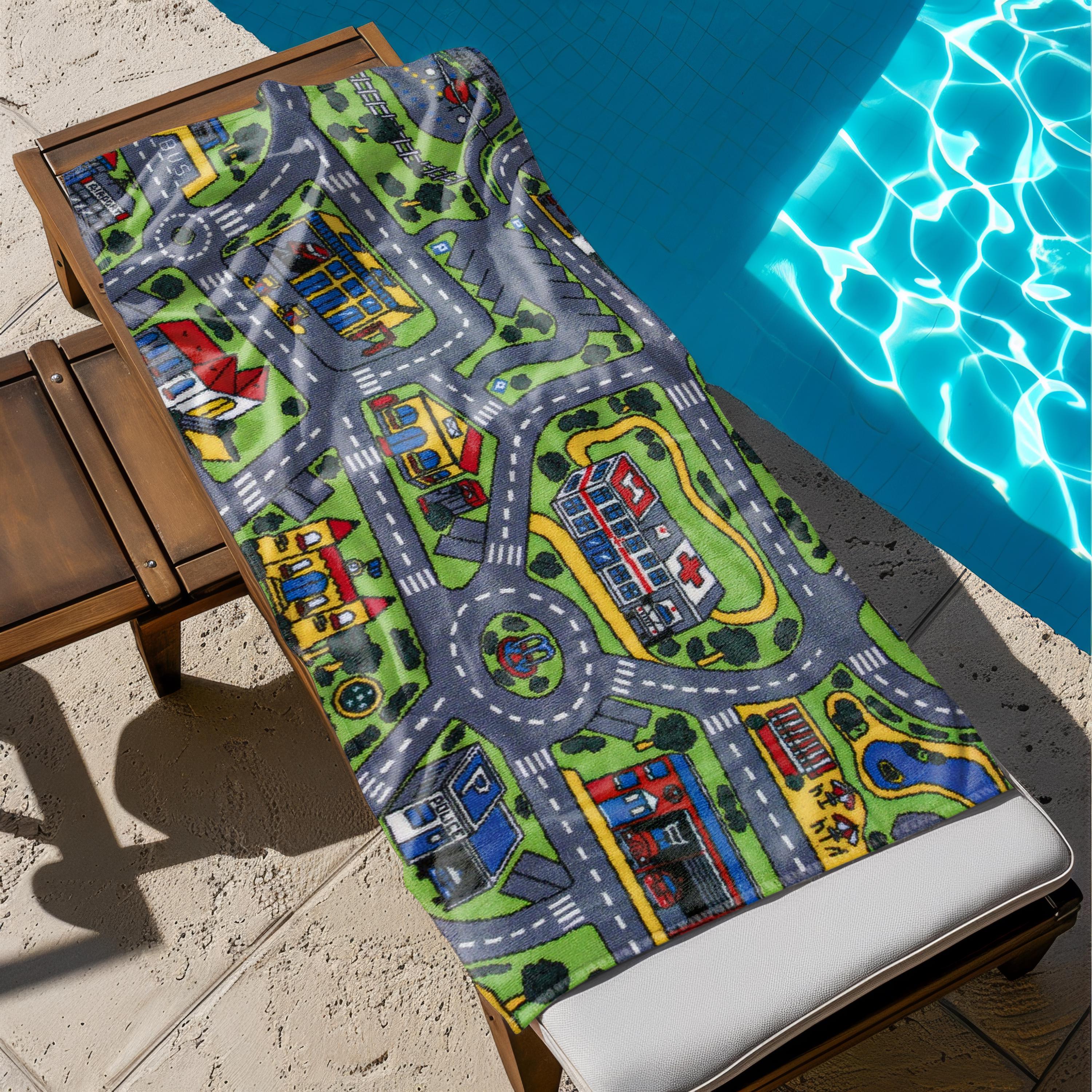 "Take a trip back to your childhood with this City Carpet beach towel featuring the classic 90s...