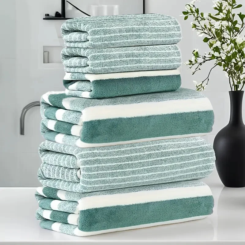 6 Pcs Set of Coral Fleece Material, 3 Bath Towels, 3 Washcloths Set, Soft and Comfortable, Suitable ...