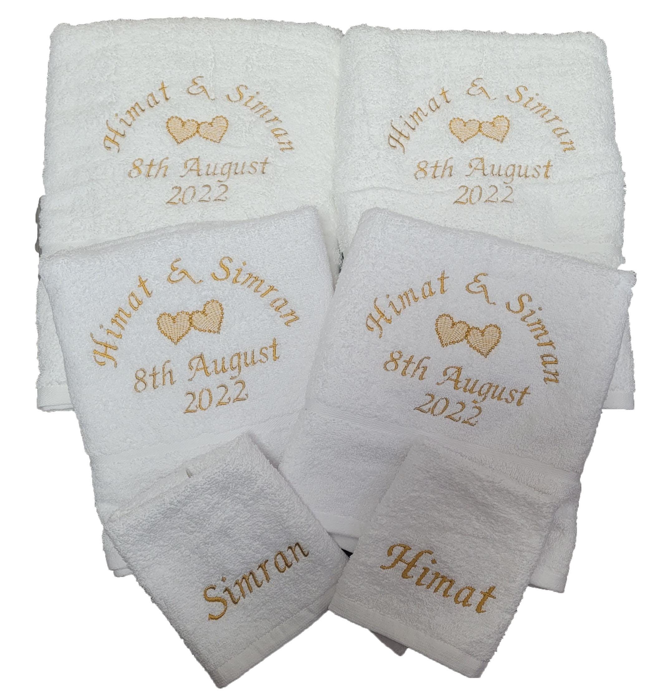 Personalised anniversary wedding towel set 2 bath towels 2 hand towels and 2 face towels Beautifully...