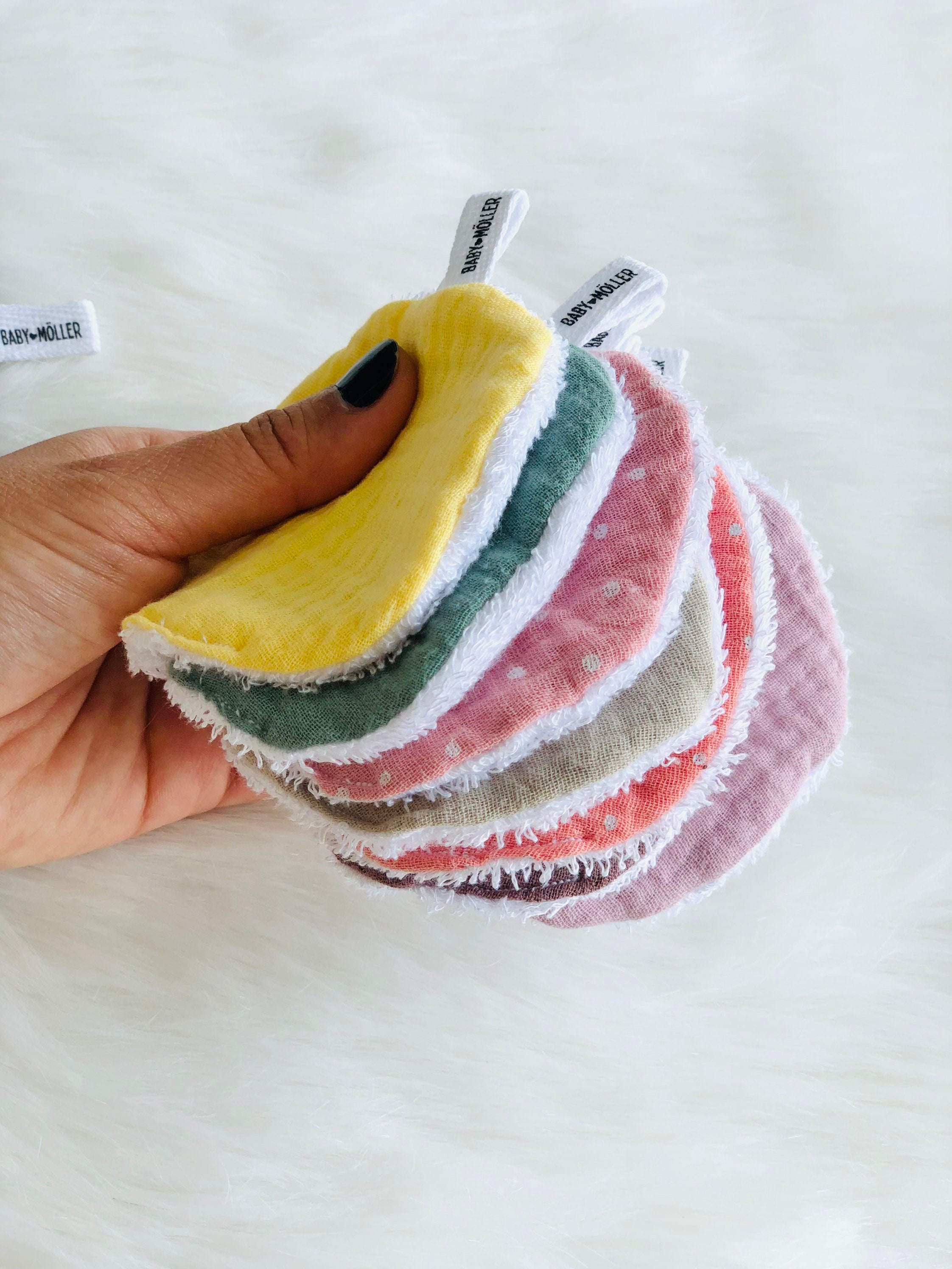 Reusable, washable 3 layers face pads made of 100% cotton. One layer of cotton fabric (too small to ...