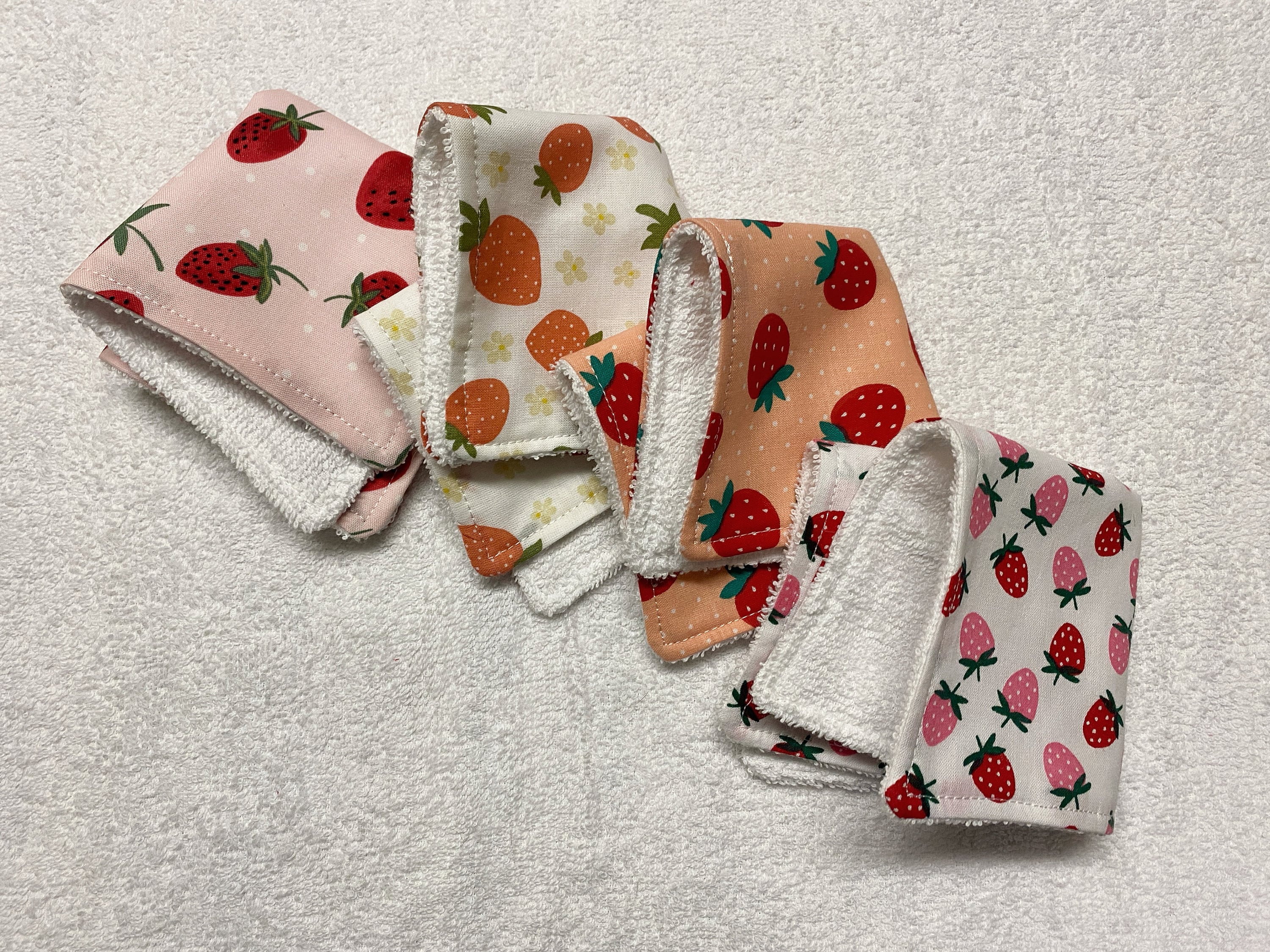 This is a bundle of the cutest strawberry-themed wash cloths. Makes a super cute gift pack for babie...