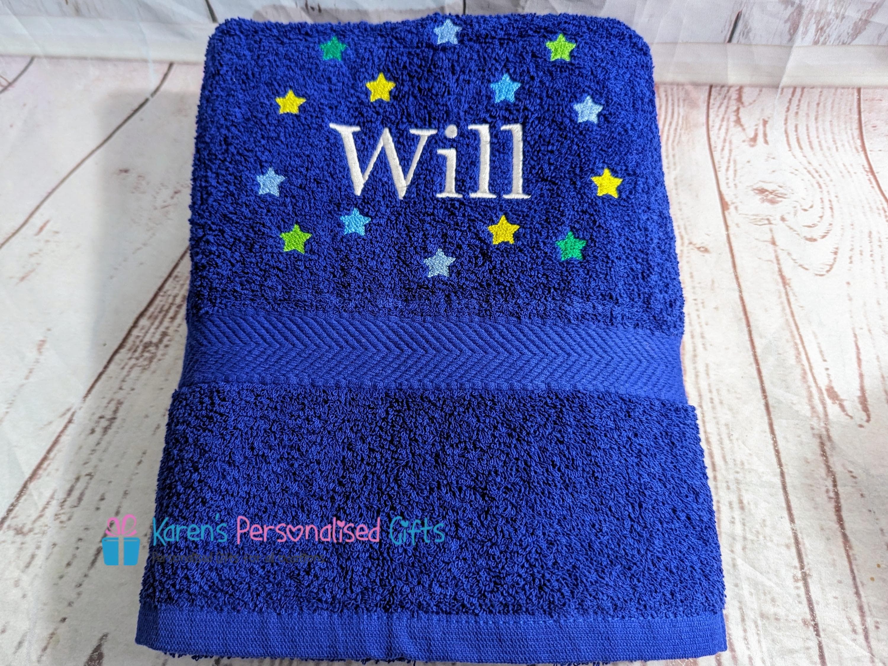 Personalised Kids Bath Towel, Royal Blue Stars Bath Towel, Children...