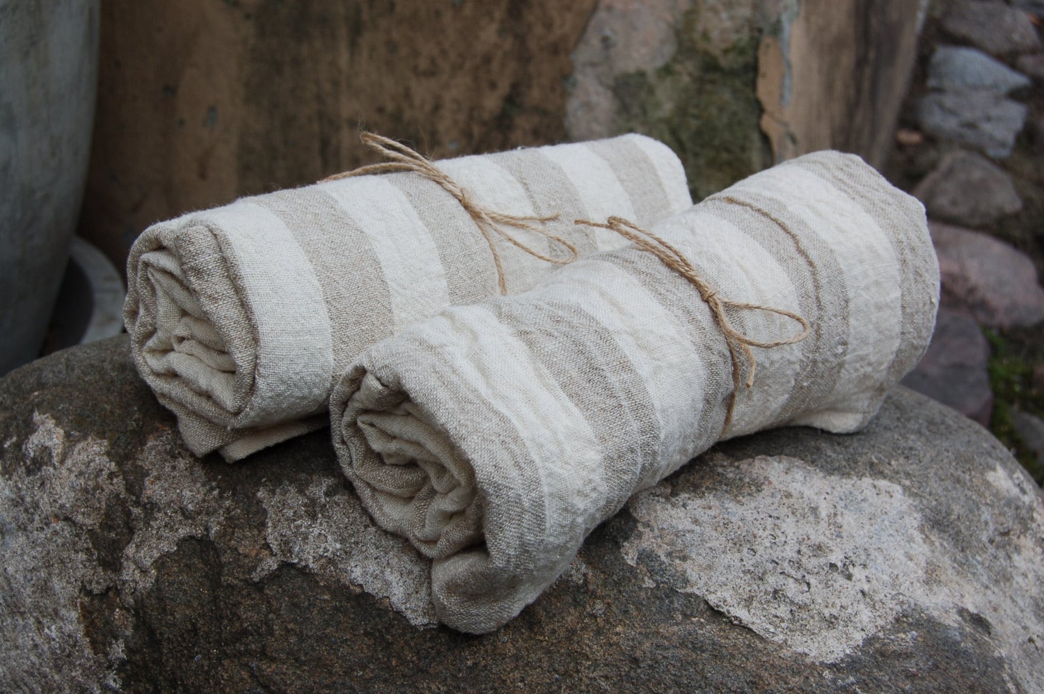 Striped linen towel, softened linen bath towel, sauna towel, beach ...