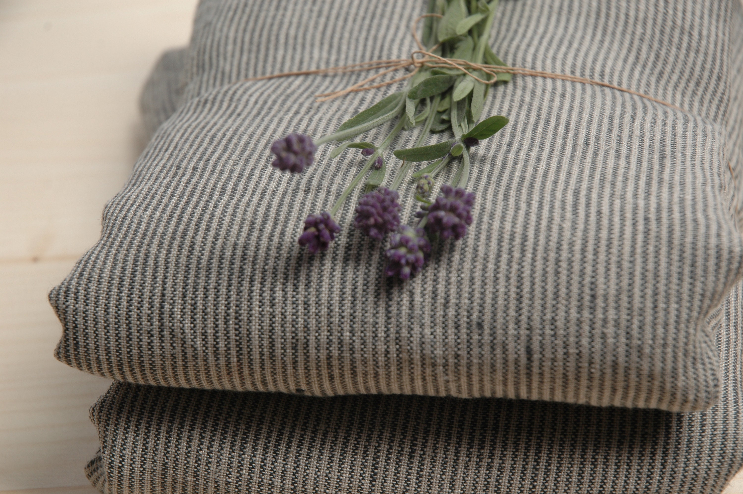 Set of 2 Soft striped linen bath towel- Grey narrow striped linen b...