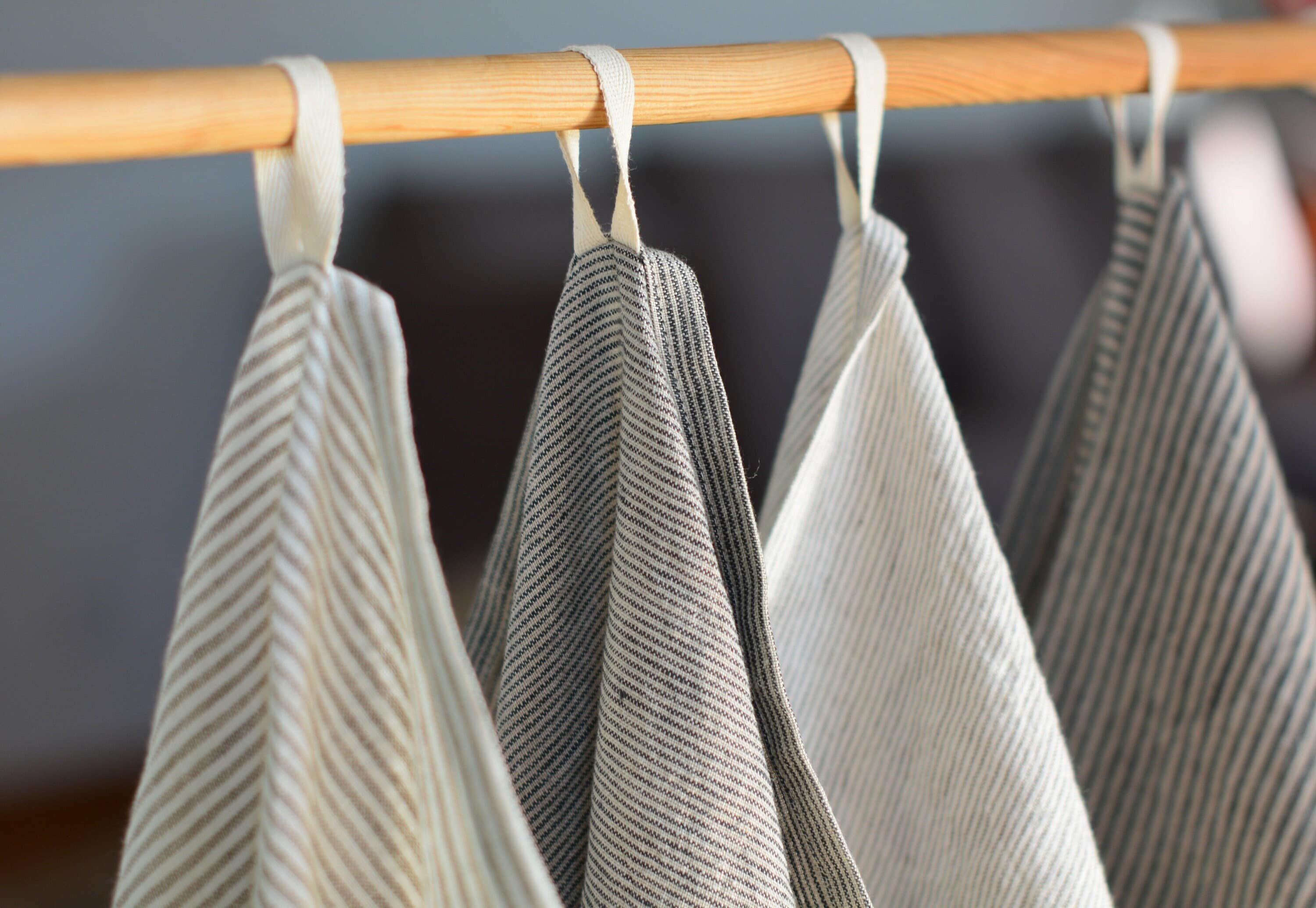 Striped linen kitchen towel, striped dining tea towel, linen dishcl...