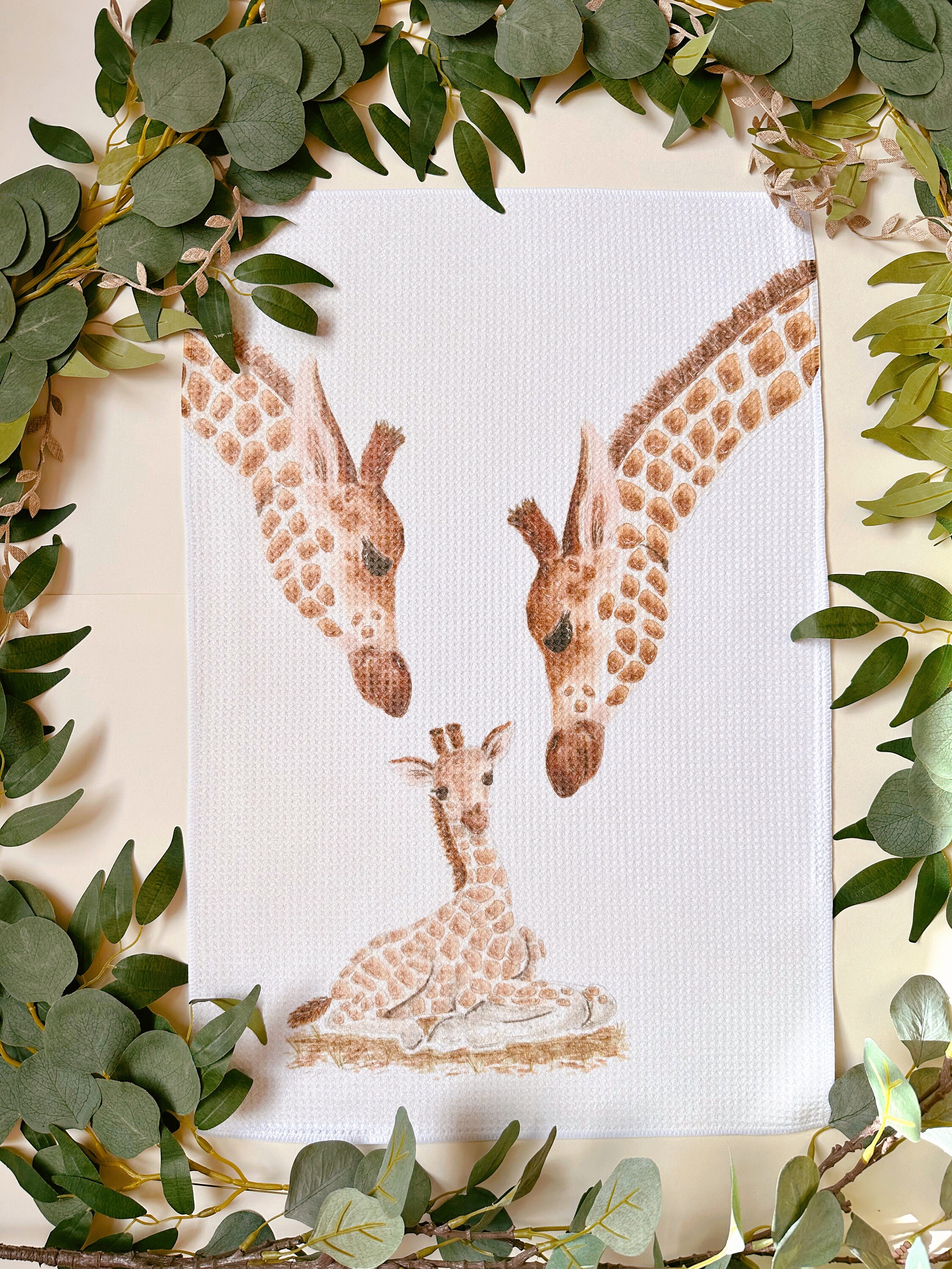 Giraffe Tea Towel - Illustrated Tea Towel - Waffle Tea Towel - Gira...