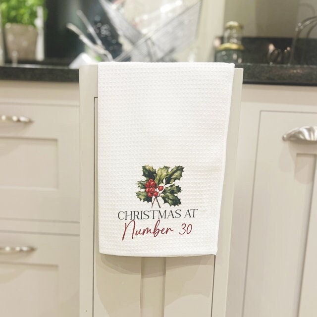 Christmas At Holly Personalised Tea Towel, Personalised Christmas T...