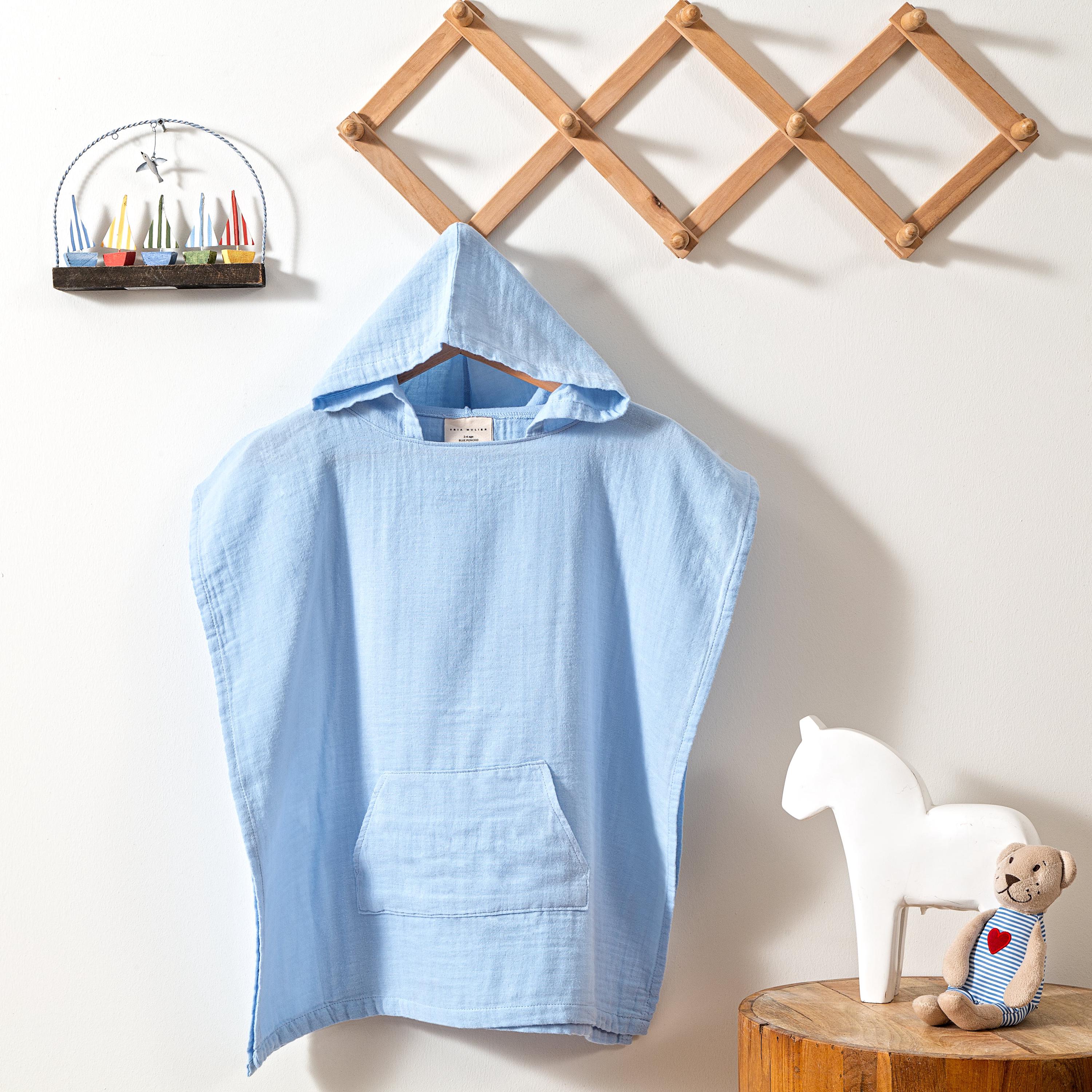 Tria Mulier Light Blue 100% Organic Cotton Muslin Hooded Poncho for...