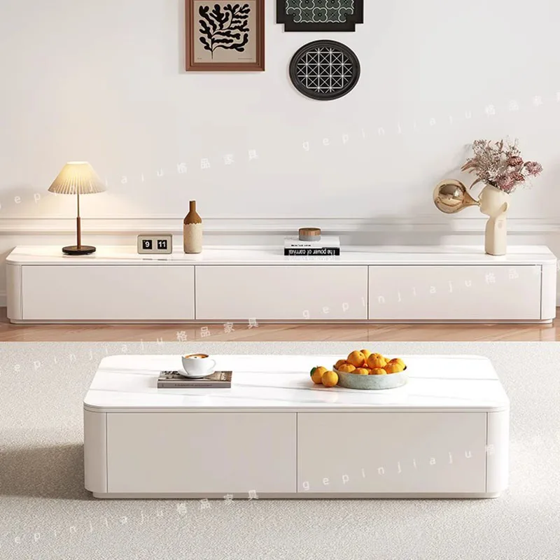 Italian Minimalist Cream TV Stand Coffee Table Set So...