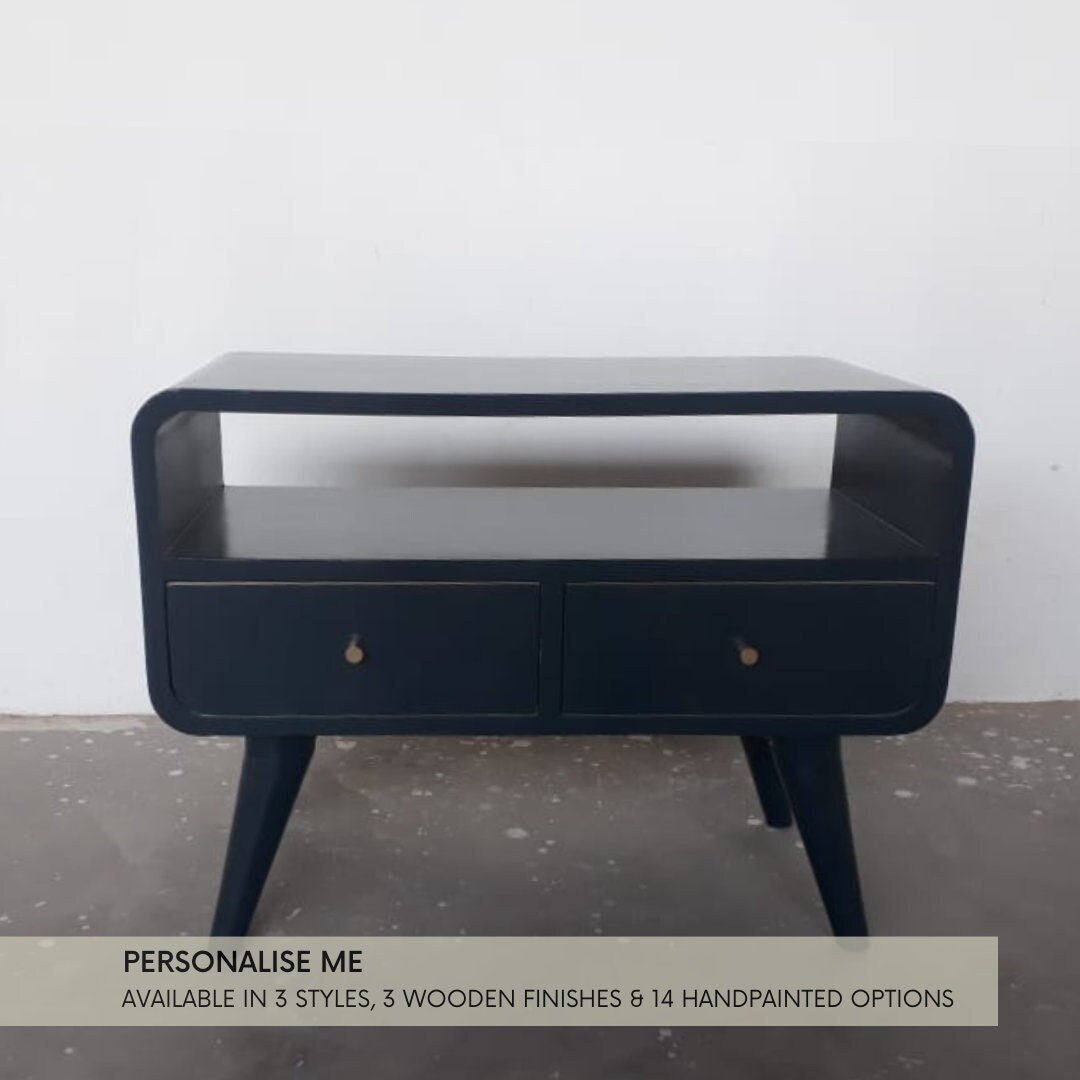 Mini Curved Mango Wood TV Stand | Navy Blue Retro Media Unit