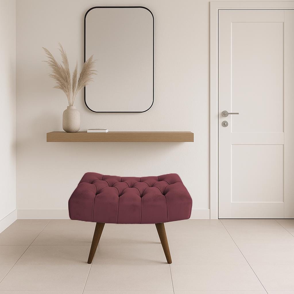 Wine red bench, Romantic home decor, Gift for wife, Curved side table, Soft textured bench, Ottoman ...