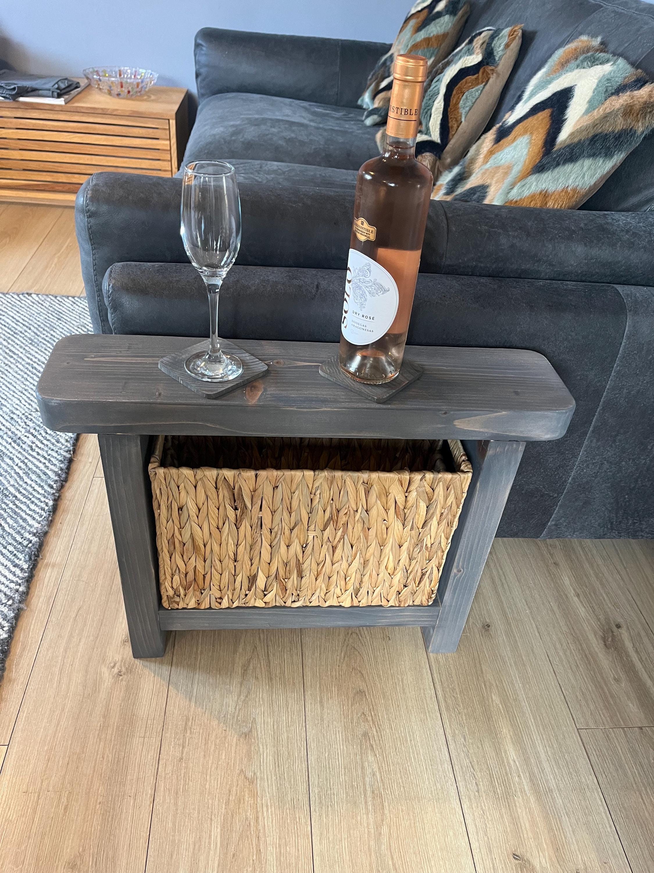 Hand crafted solid wood sofa side/end table and Handwoven water hya...