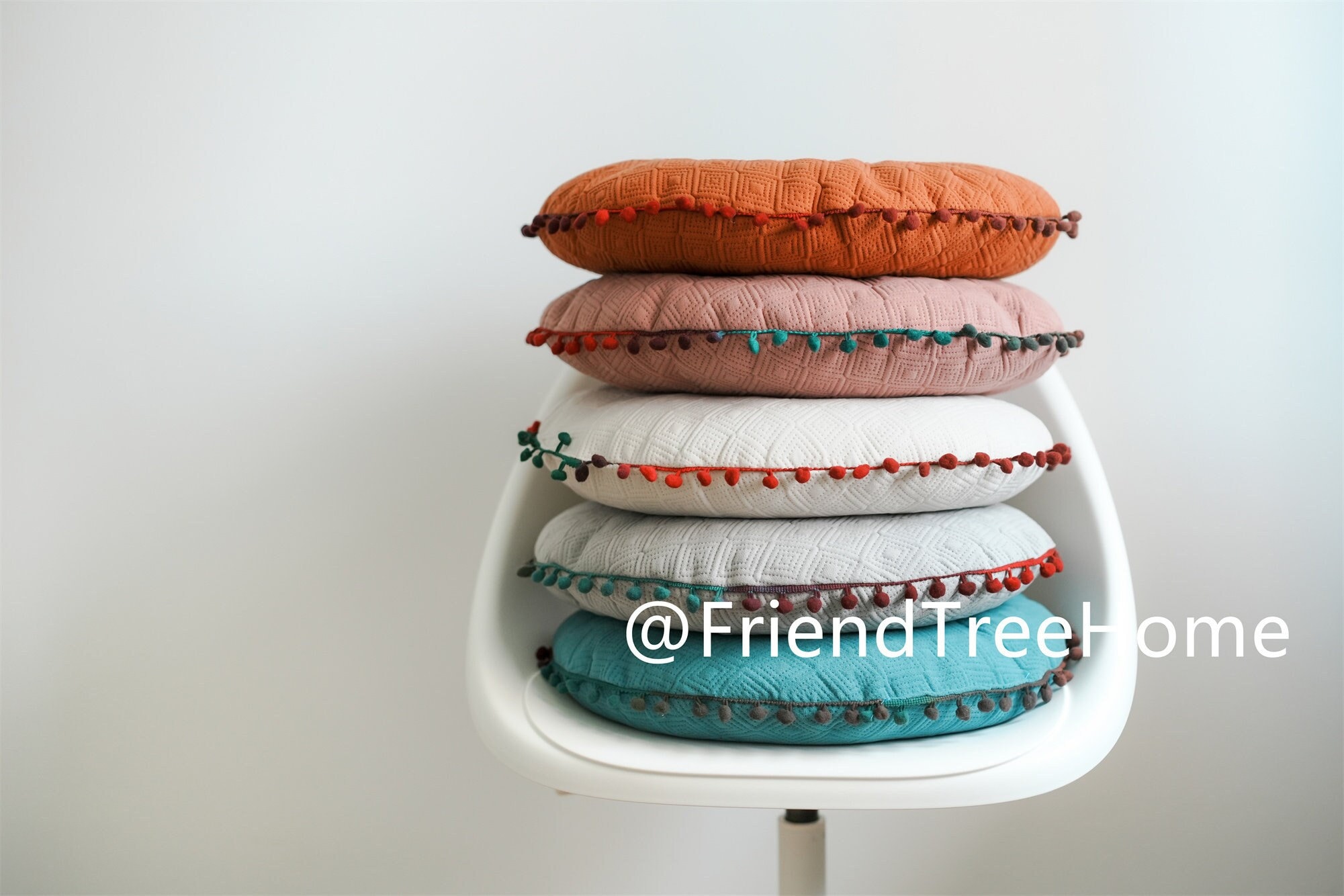 Dining chair seat pad with pompom ball/ round chair cushion / dining chair seat pad / thin seat cush...