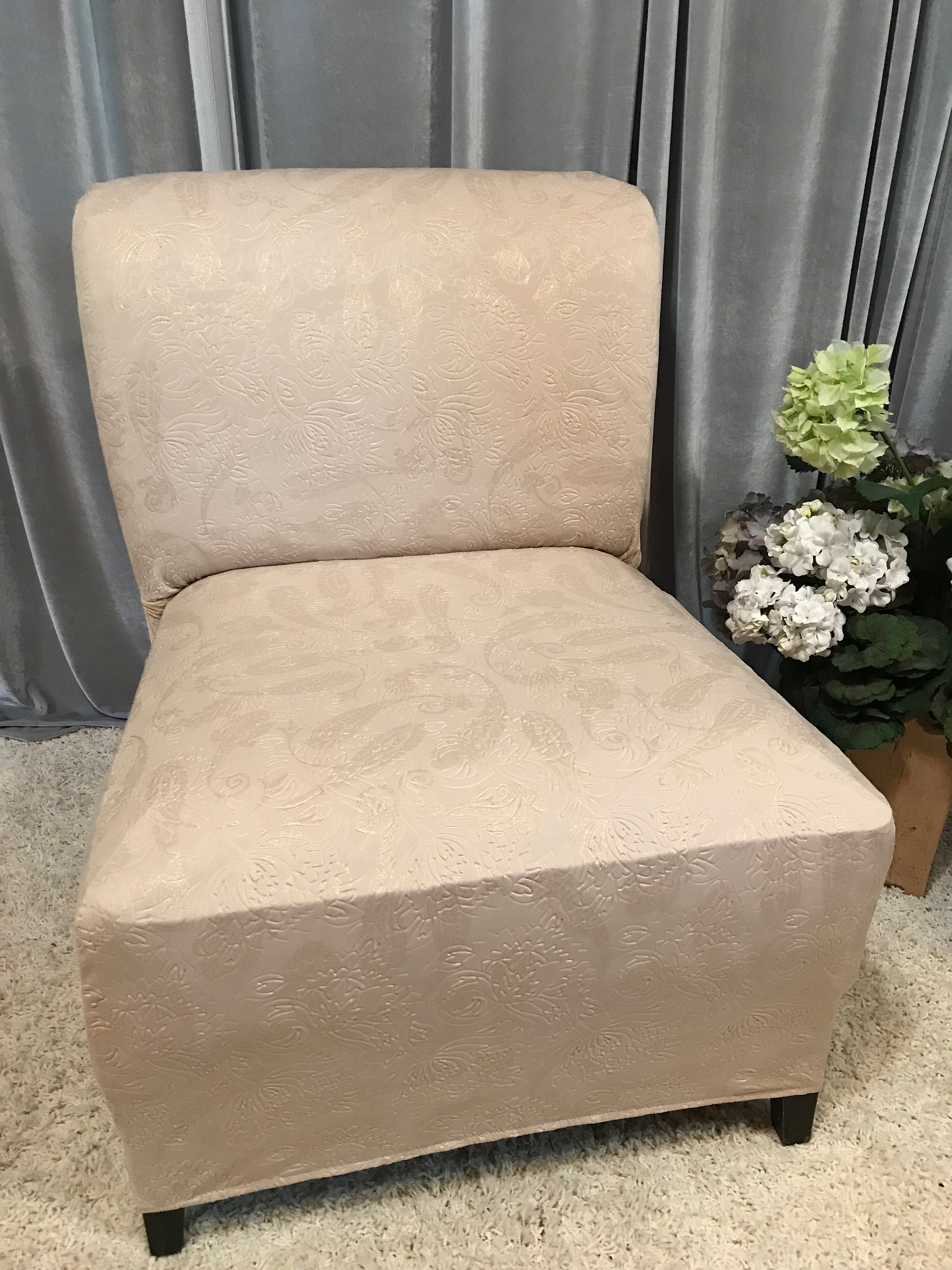 Champagne Gold Luxury Embossed Slipcover Chair Cover for Armless Ch...