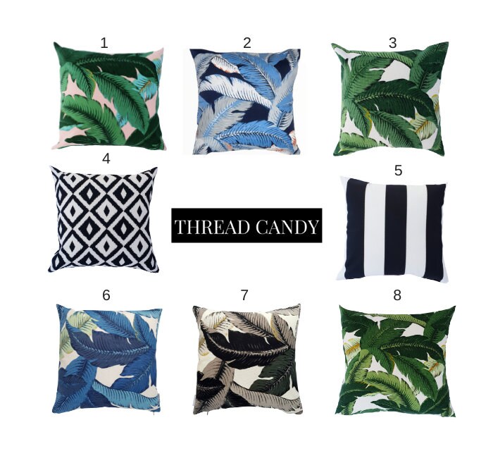 Thread Candy's most popular tropical palm cushions, we added the black and white as they go together...