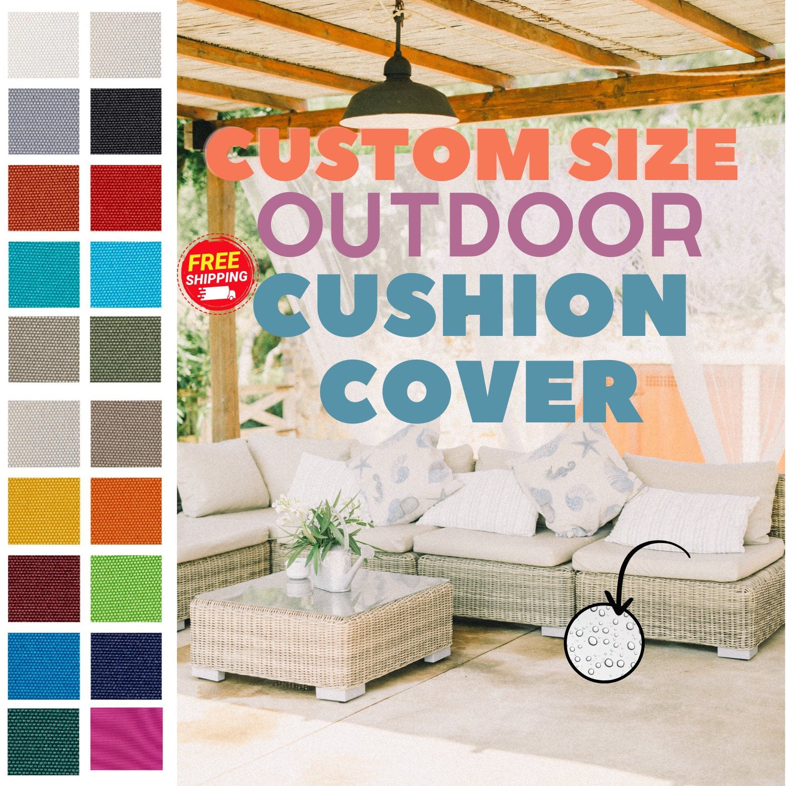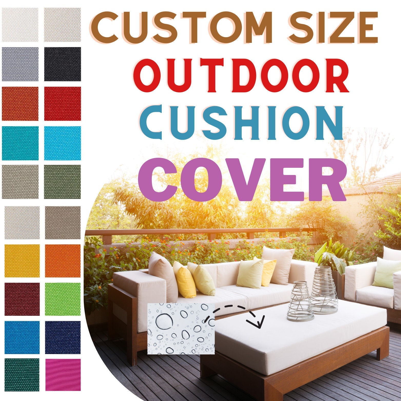 Durable Custom Size Cushion Cover - Waterproof & UV Resistant Outdoor Comfort Your outdoor space...