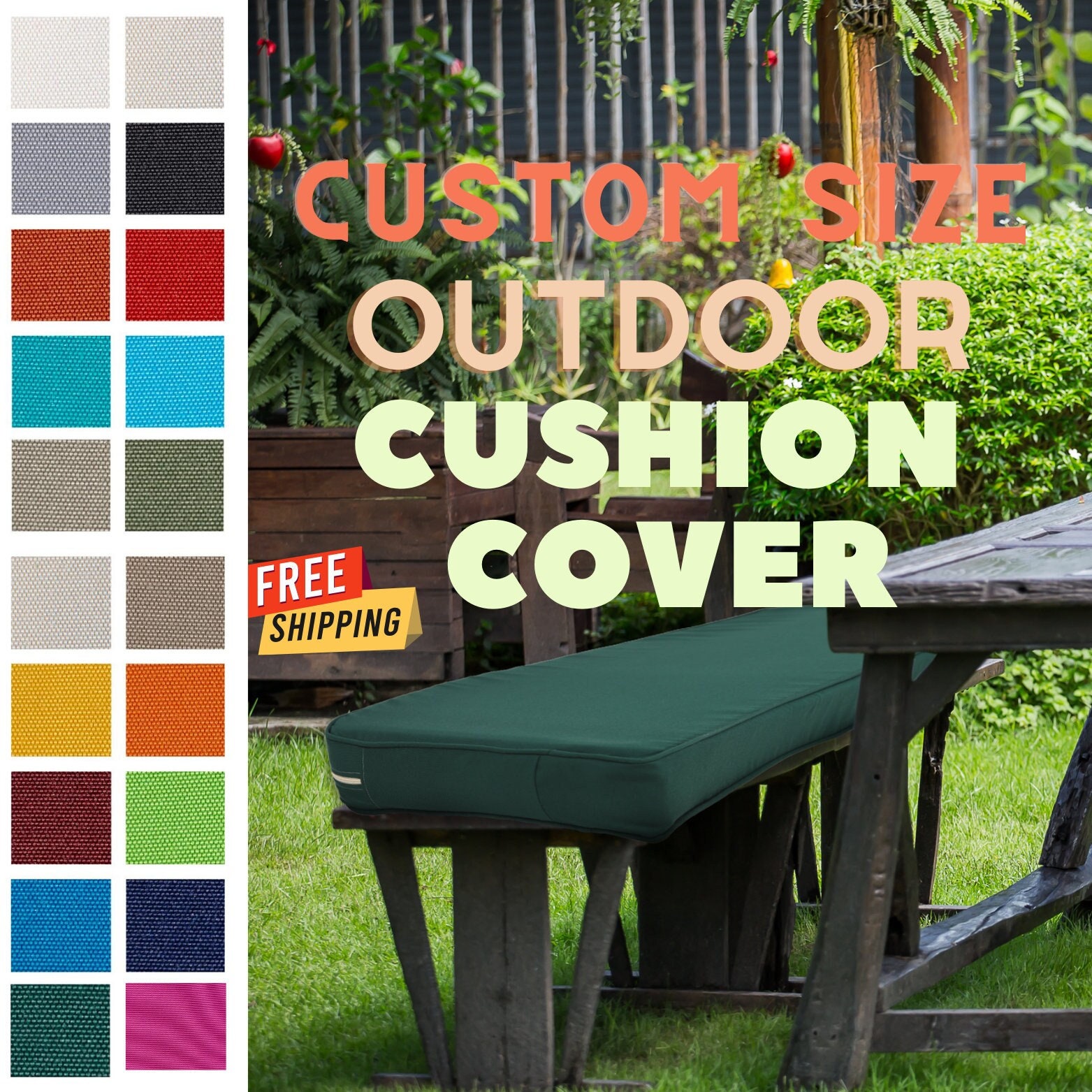 "Waterproof Cushion Cover, Outdoor Patio Cushion, Garden Patio Cushion Covers, Custom Size Benc...