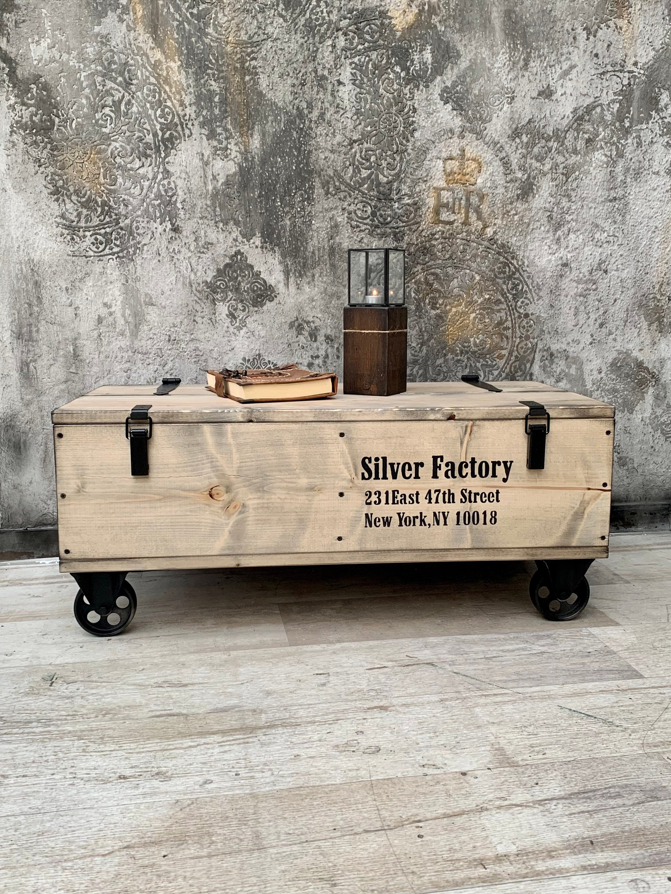 "Wooden box coffee table cargo box chest table storage box \&q...