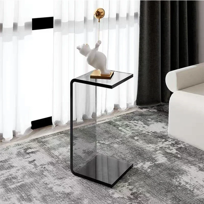 C Shaped End Table Acrylic Sofa Side Table Snack Tables Clear Acrylic Rectangular Display Riser 60/6...