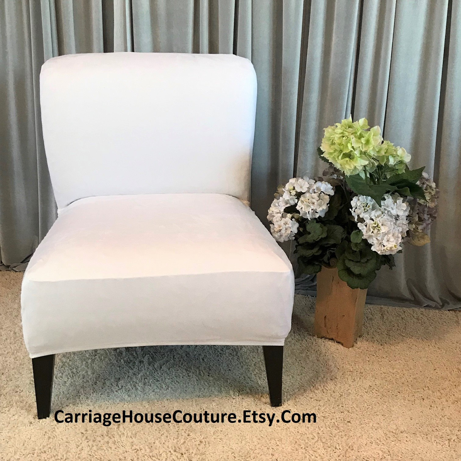 Slipcover White Suede Chair Cover for Armless Chair, Slipper Chair,...
