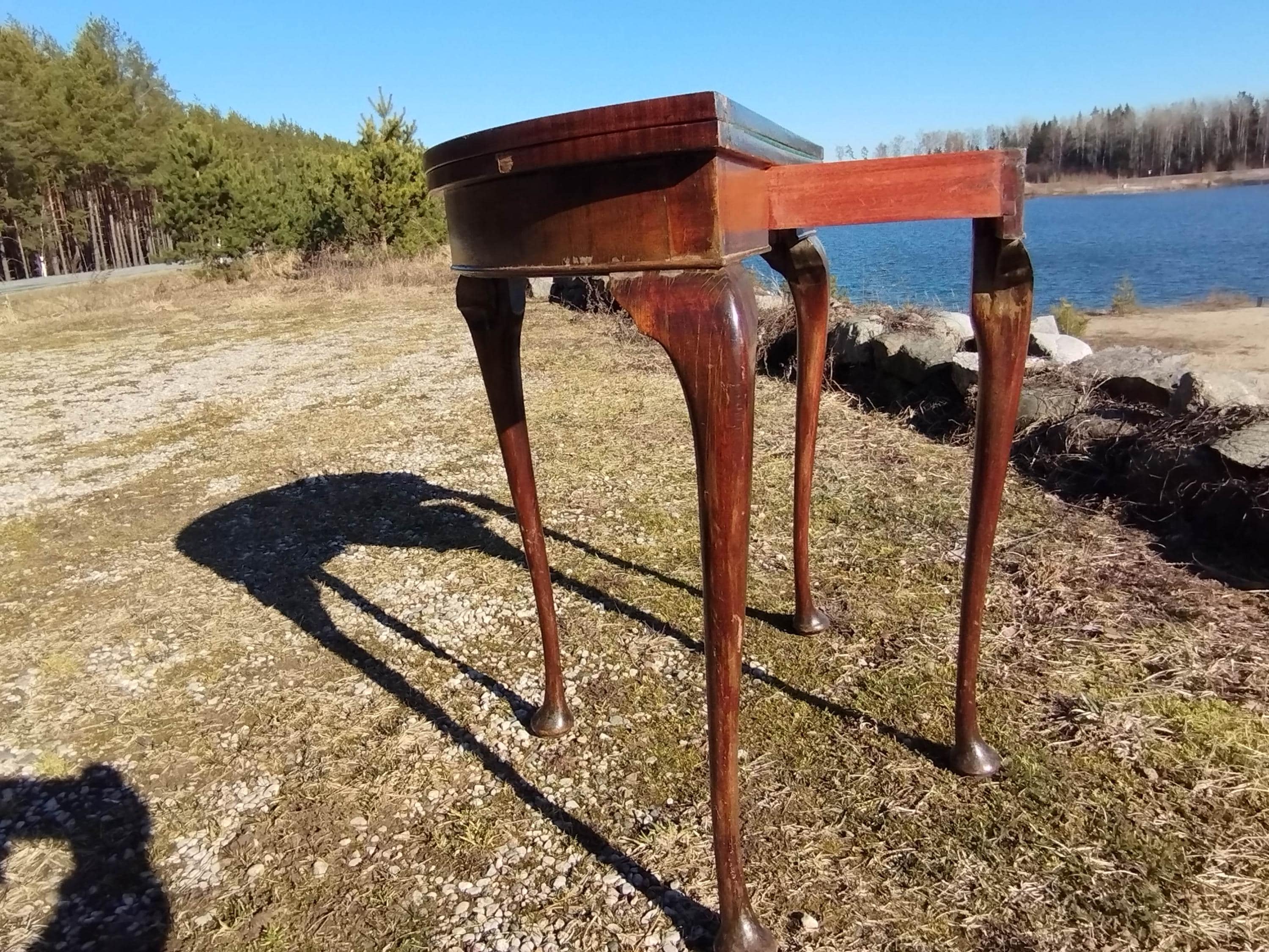 Antique Georgian Mahogany Card Play Fold Table raised on turned leg...