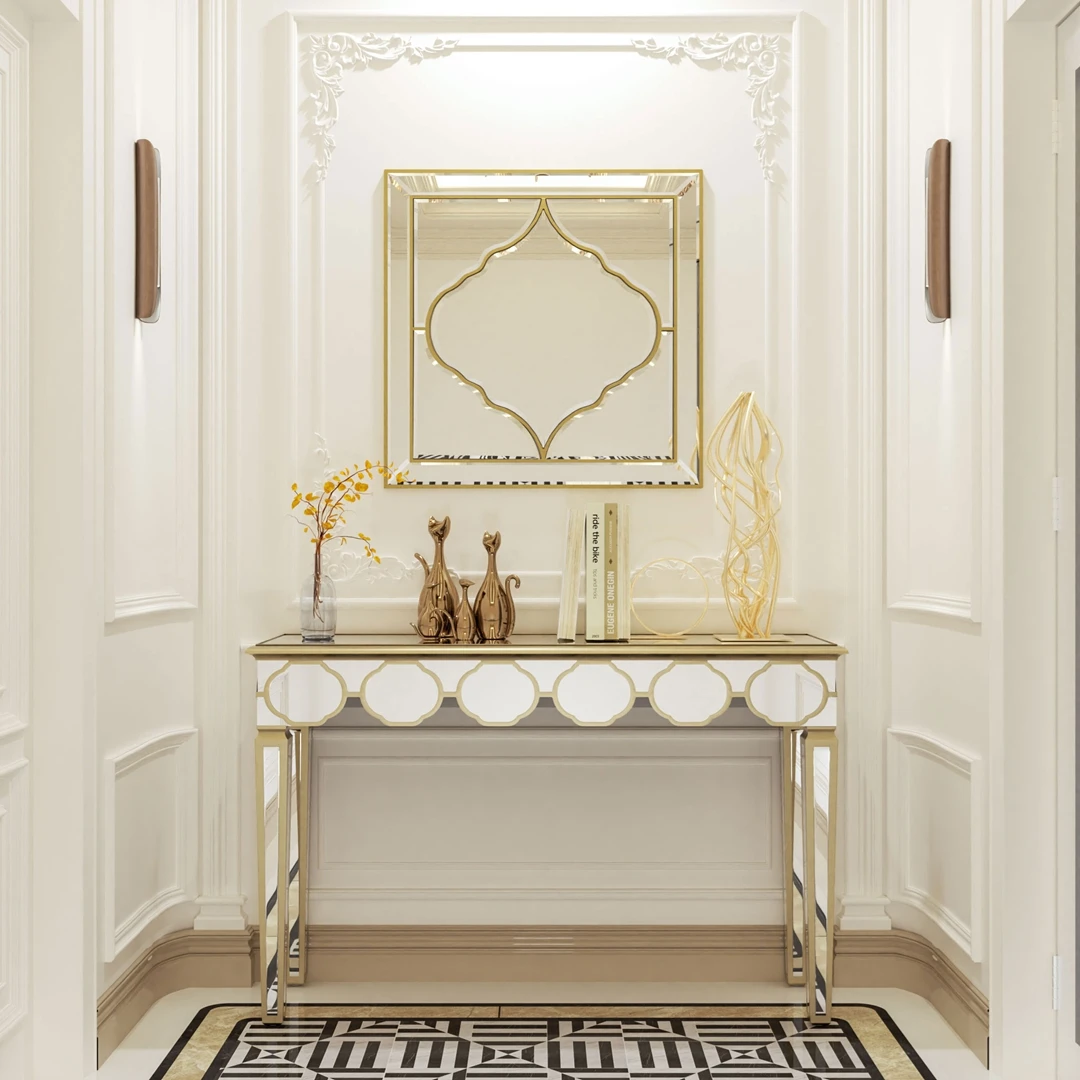 Modern Rectangular Mirrored Console Table Gold Rim Decorative Sofa ...