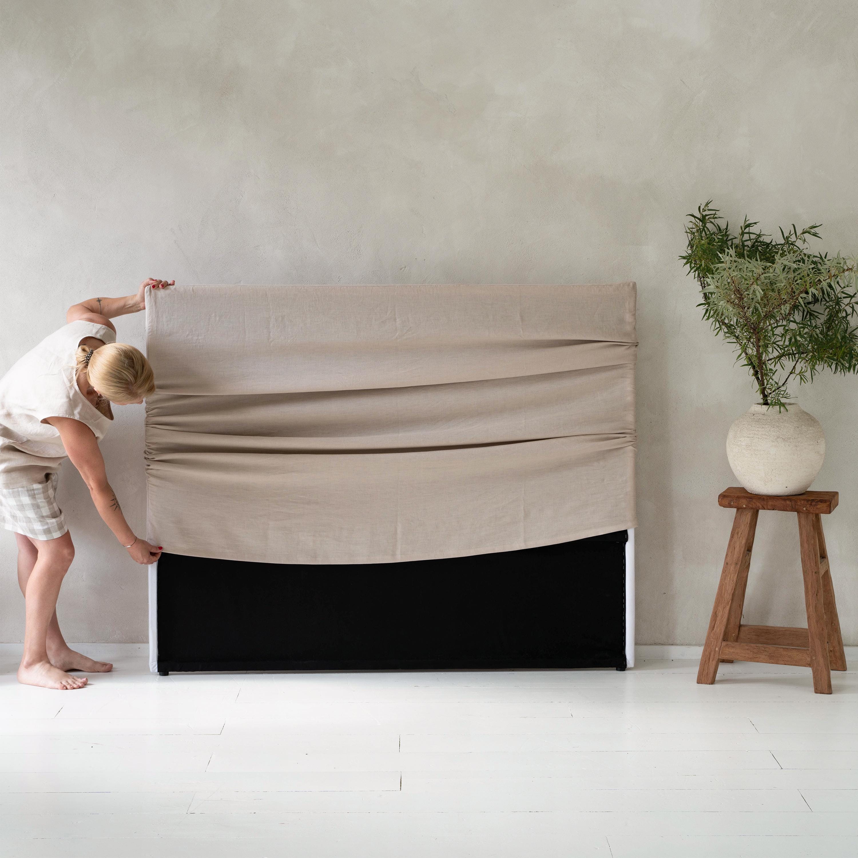 Refresh your bedroom with a beautifully tailored natural linen headboard cover, custom-made to fit y...