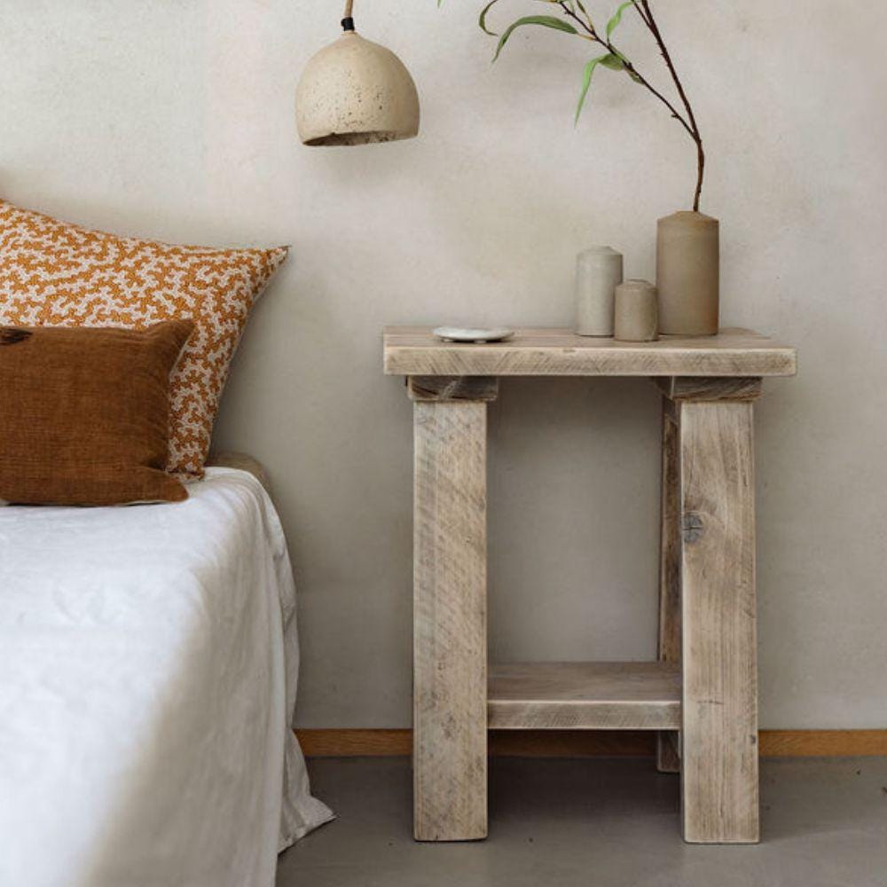 Rustic Reclaimed Wood Side Table with Shelf: Handmade Barn Style
