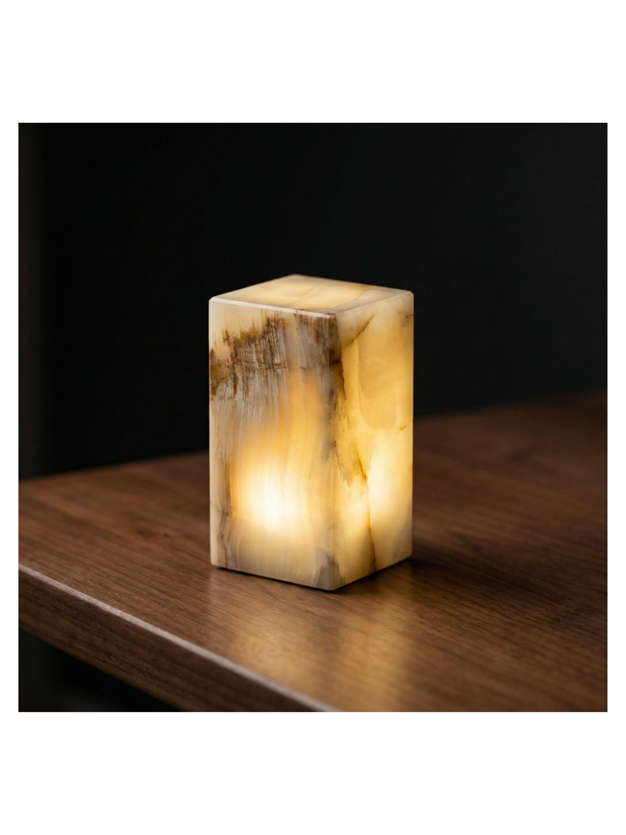 Bring a calm, refined glow to your space with this natural marble touch table lamp. Each lamp is cra...