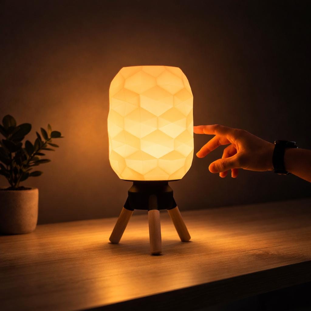 Scandinavian wooden table lamp - Tripod bedside lamp - Geometric be...