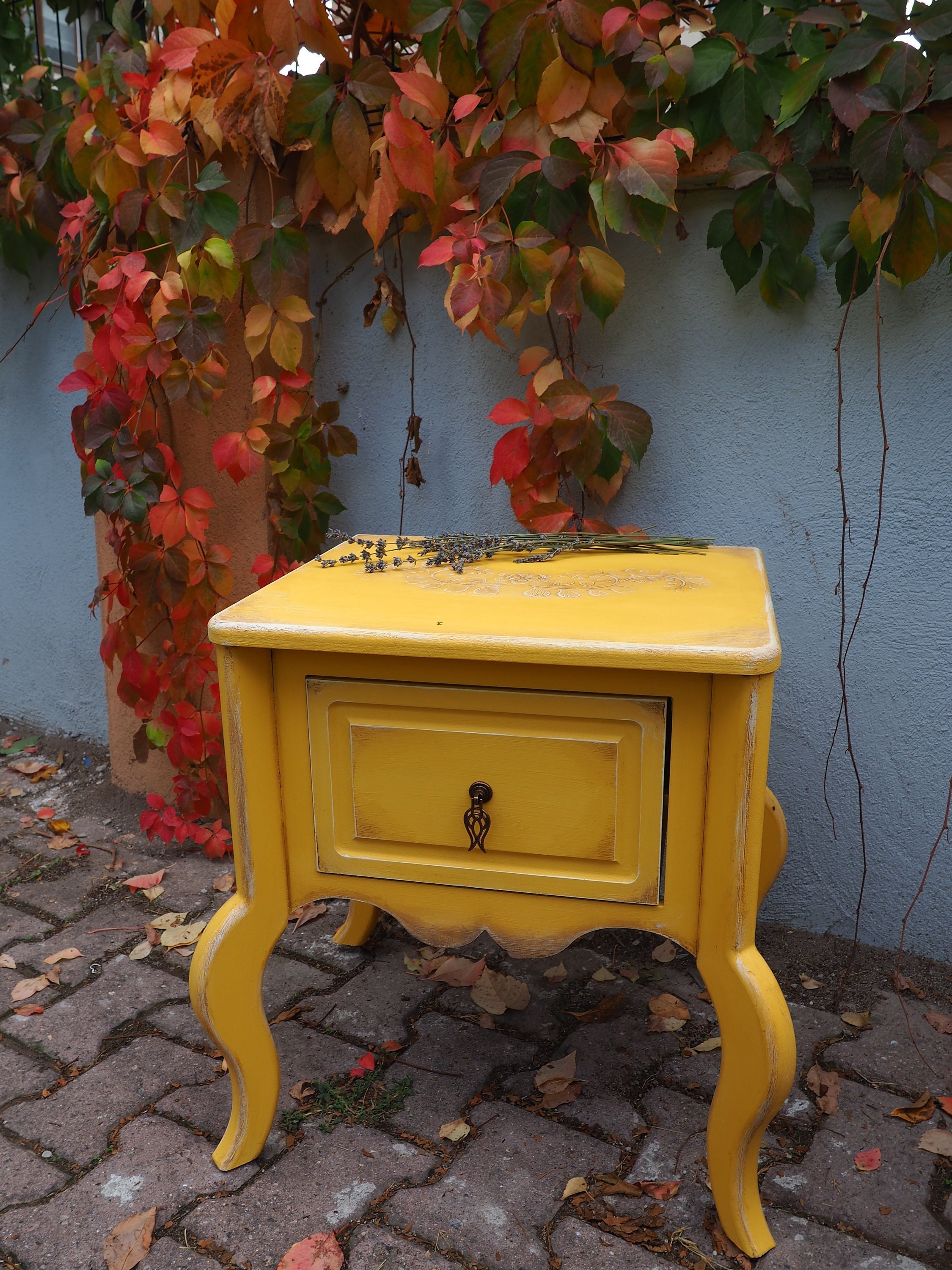 Bed Side Table With One Drawer -Vintage Style - Yellow Colour - Side Table- Coffee Table-Chest Of Dr...