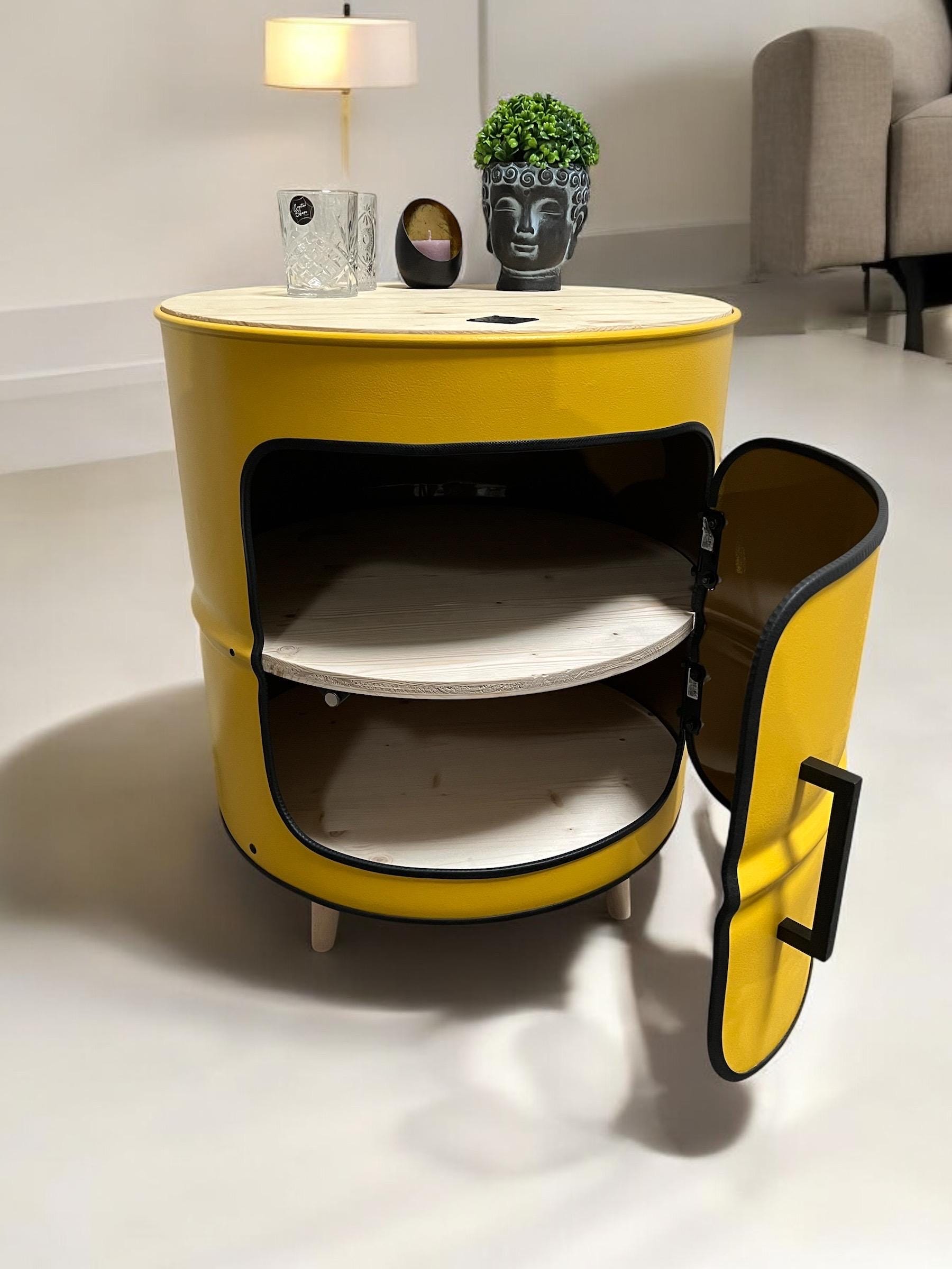 Unique oil drum side table made of wood and metal - usable as a bed...