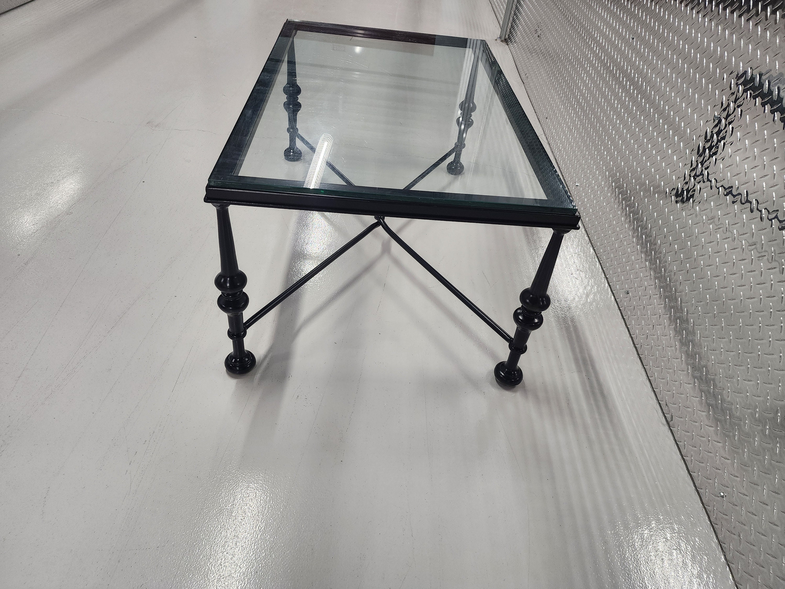 "Vintage Diego Giacometti style wrought iron glass top coffee ...