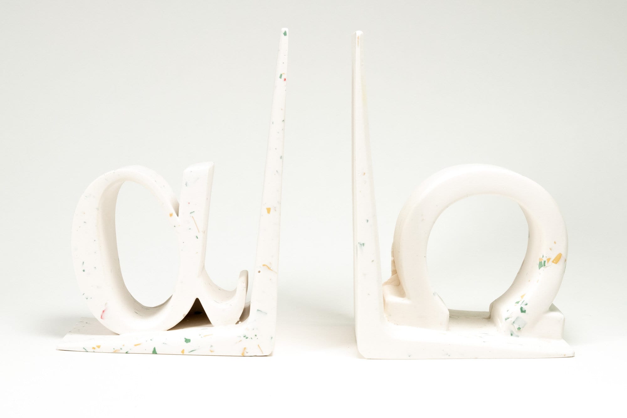 Handmade Jesmonite bookends with a fine white base with yellow and green terrazzo particles, in the ...
