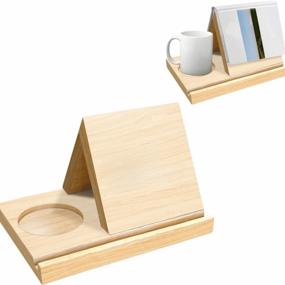 Portable 2 in 1 Wood Book Stand Reading Triangle Reading Stand Book Coffee Organizer Study Room