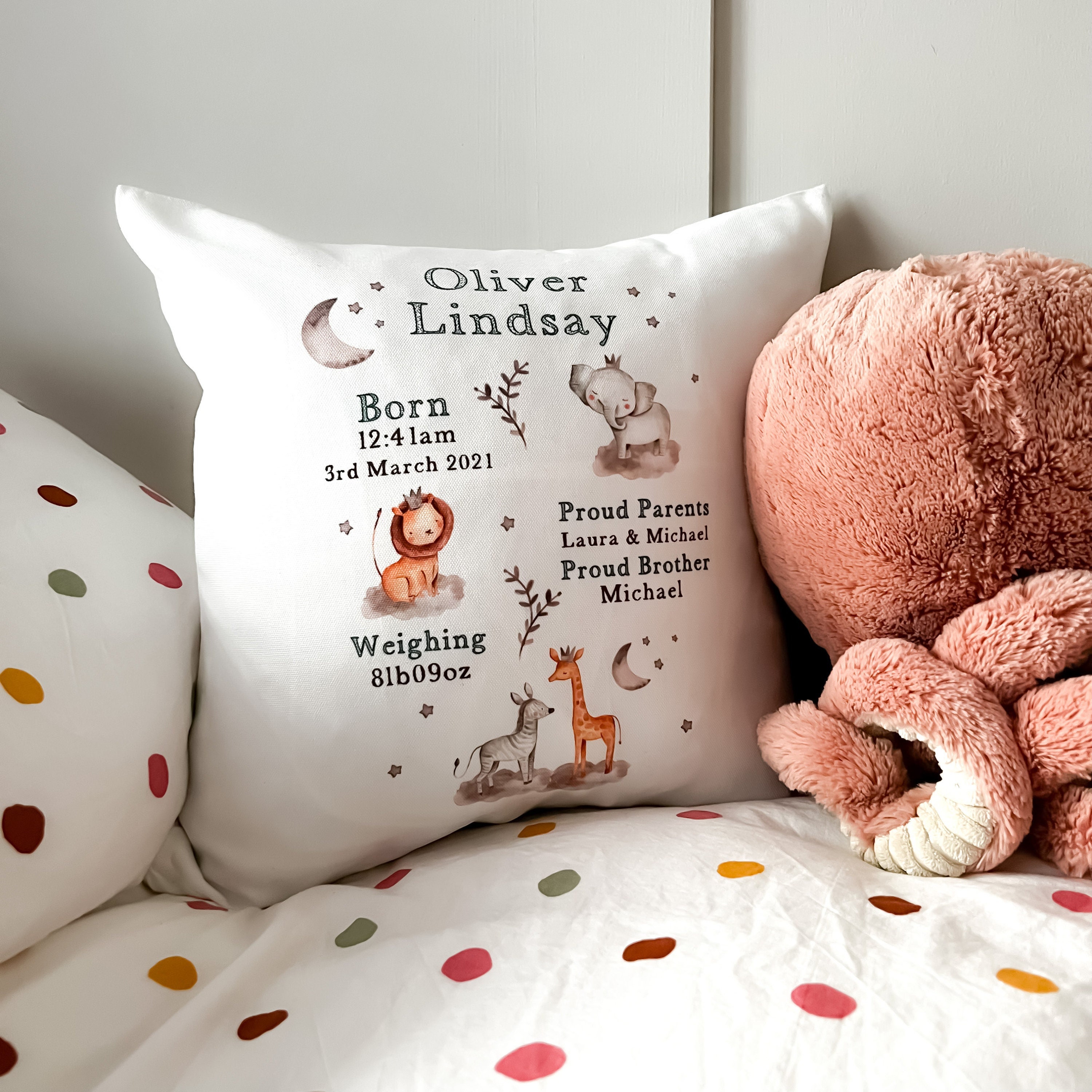 New baby gift, personalised baby birth stats cushion, nursery cushi...