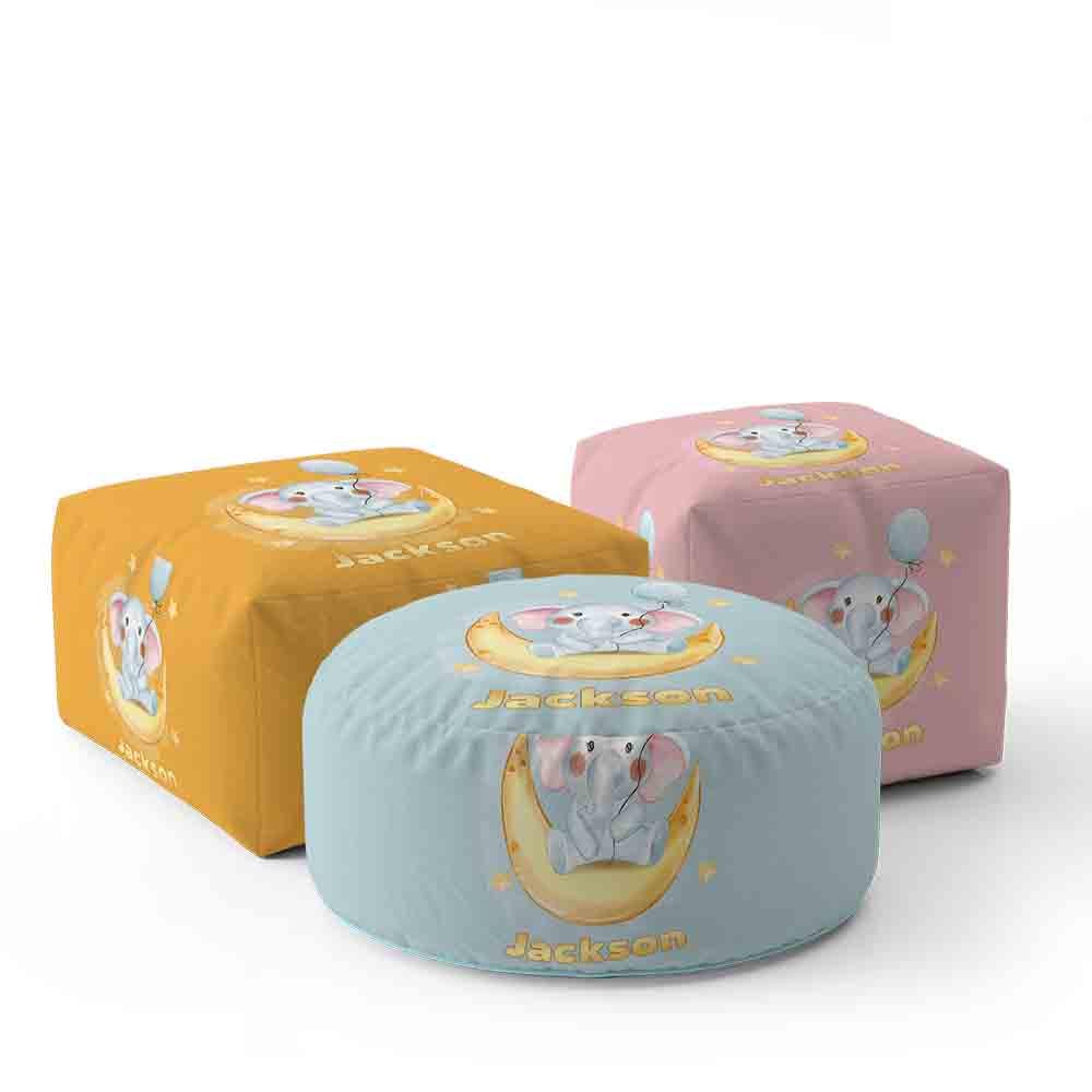 Baby Elephant Personalised Kids Pouffe | Custom Name & Backgrou...
