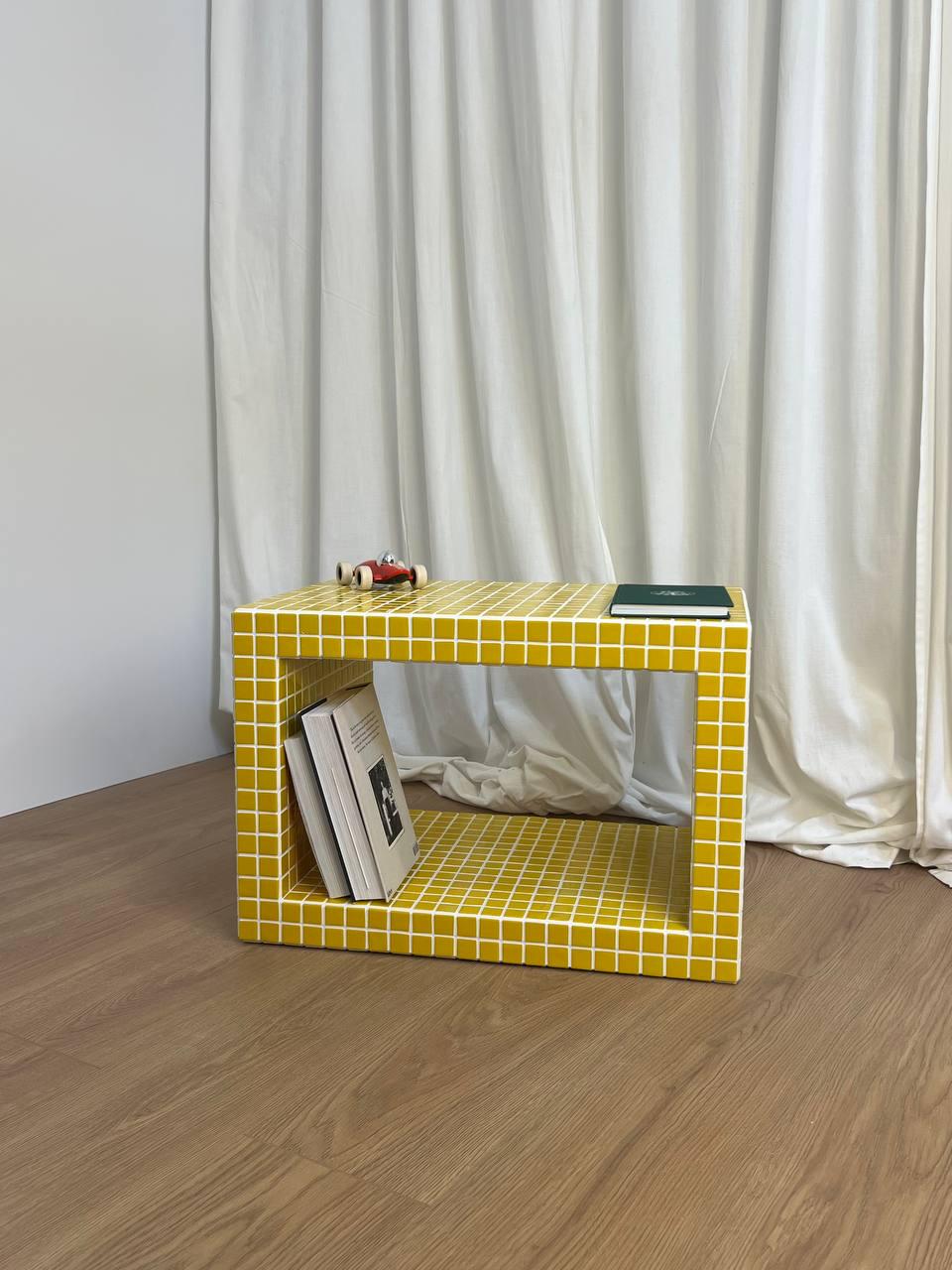• Yellow Console. Tiled coffee table. End table. Christmas decor. Hom...