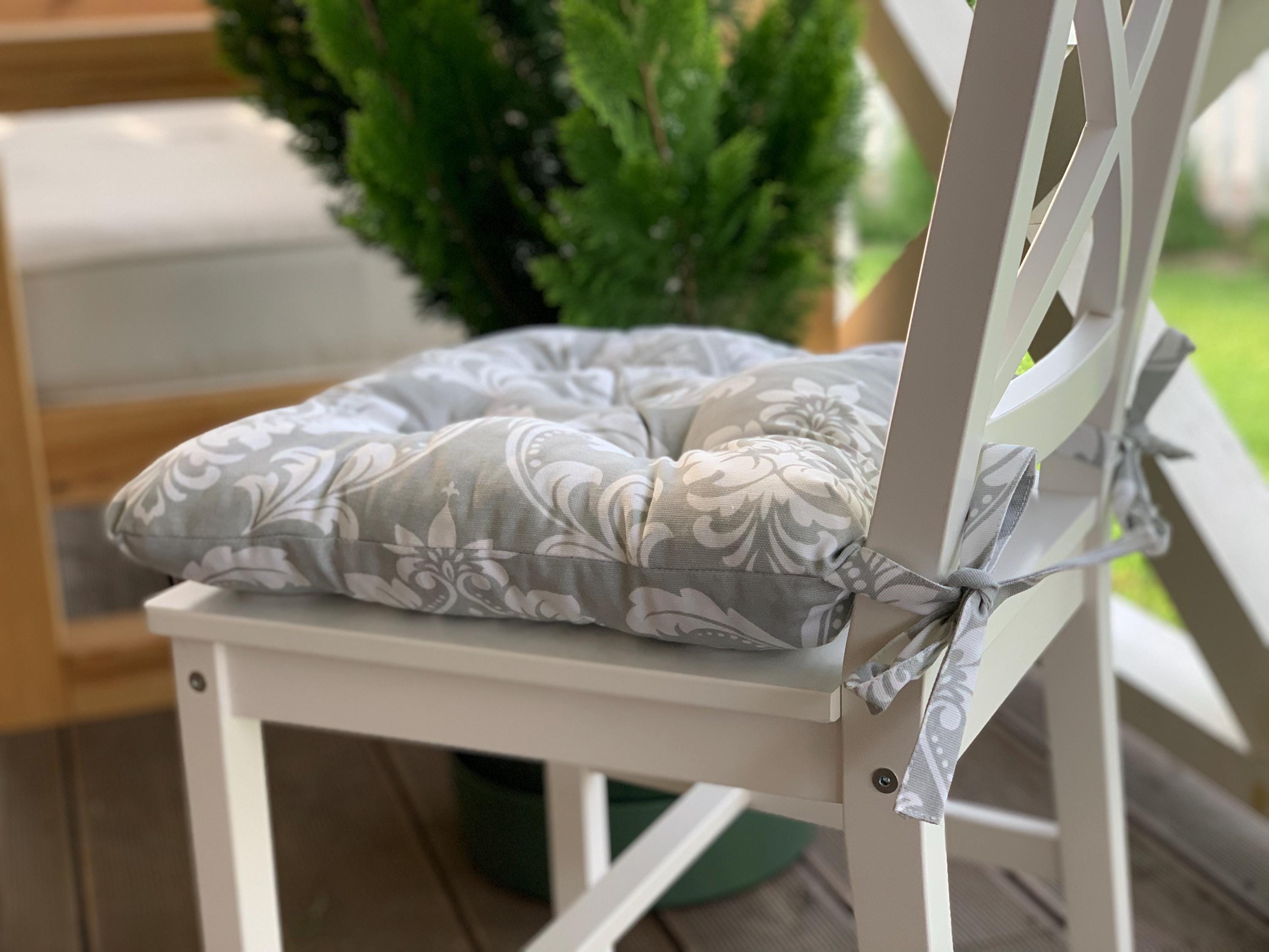 Square cushion with ties for a chair from an elite, dense fabric with a beautiful pattern Such a pil...